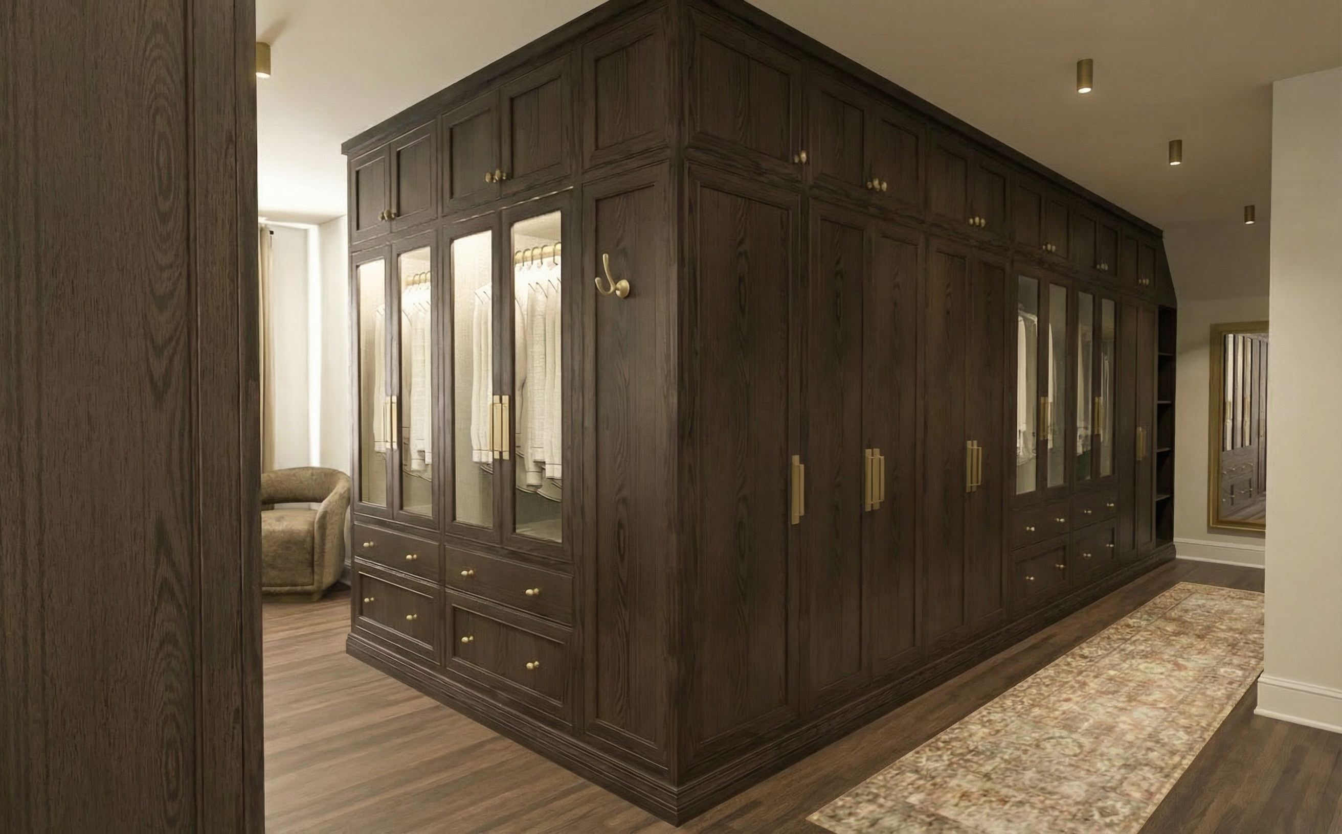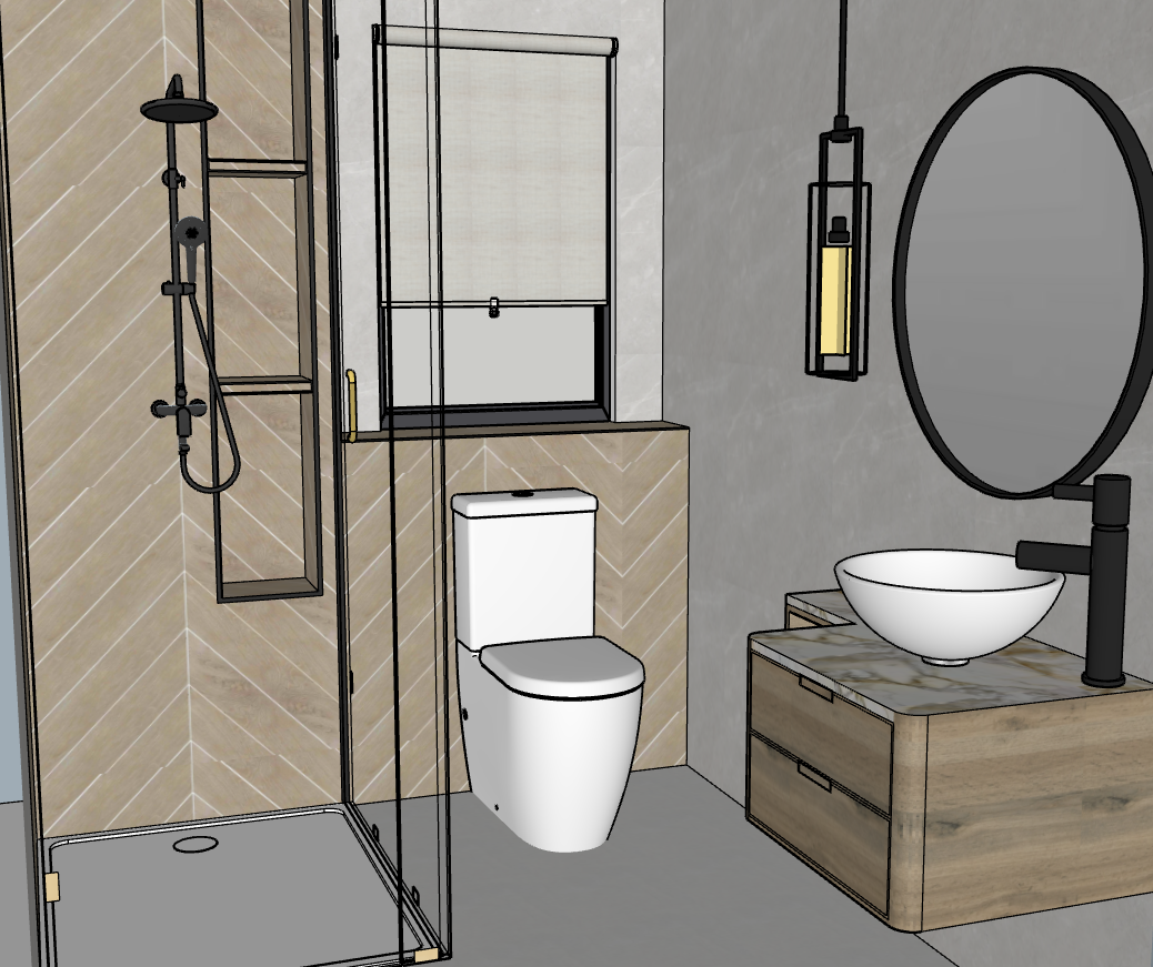 led light behind round mirror and spot lighting in the ceiling with led lighting in the shower niches
