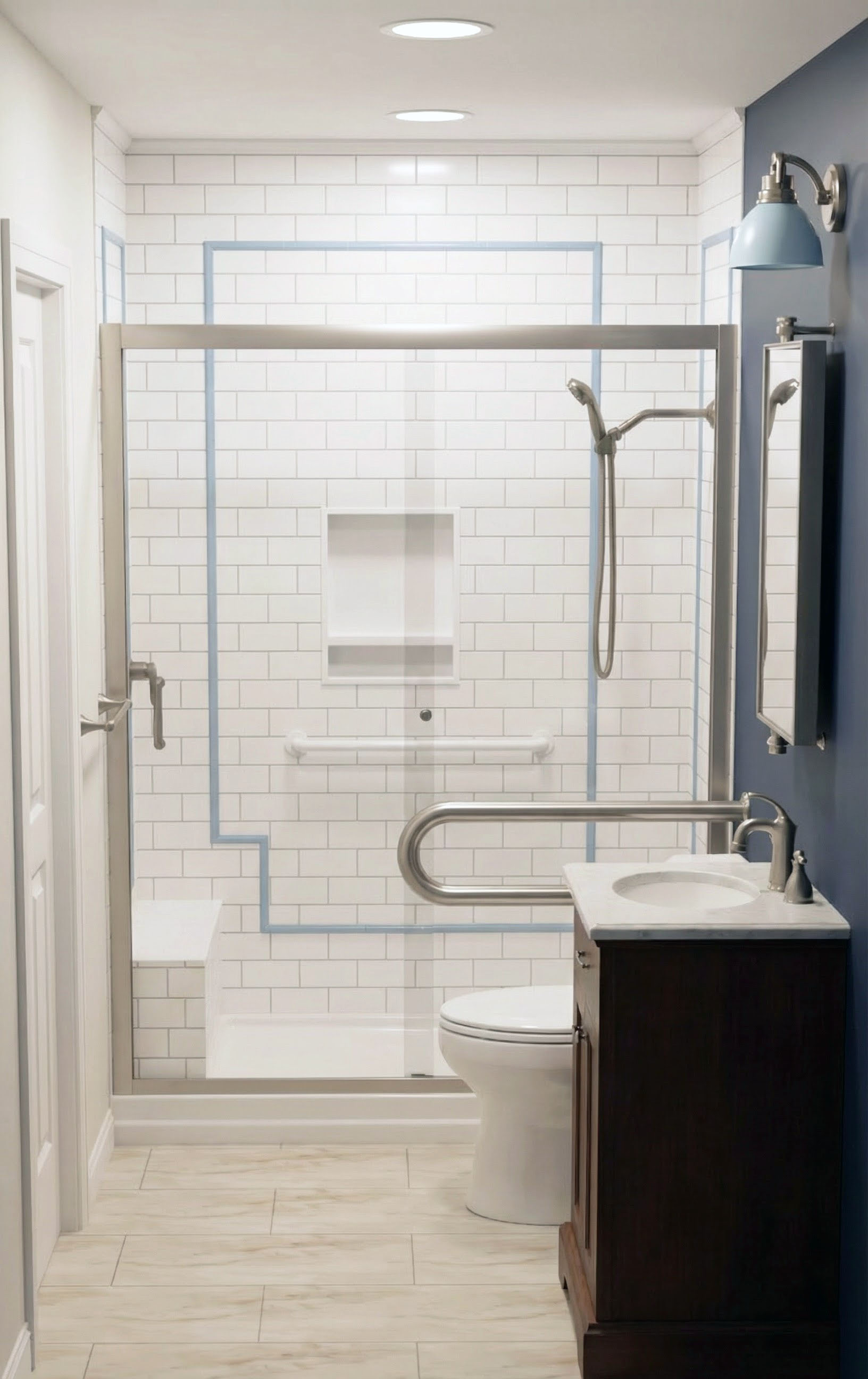 move the shower fixture from the left to the right use 2700k for lighting temperature