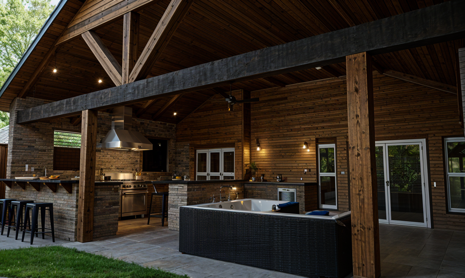 add soft recessed lighting to patio ceiling keep daytime