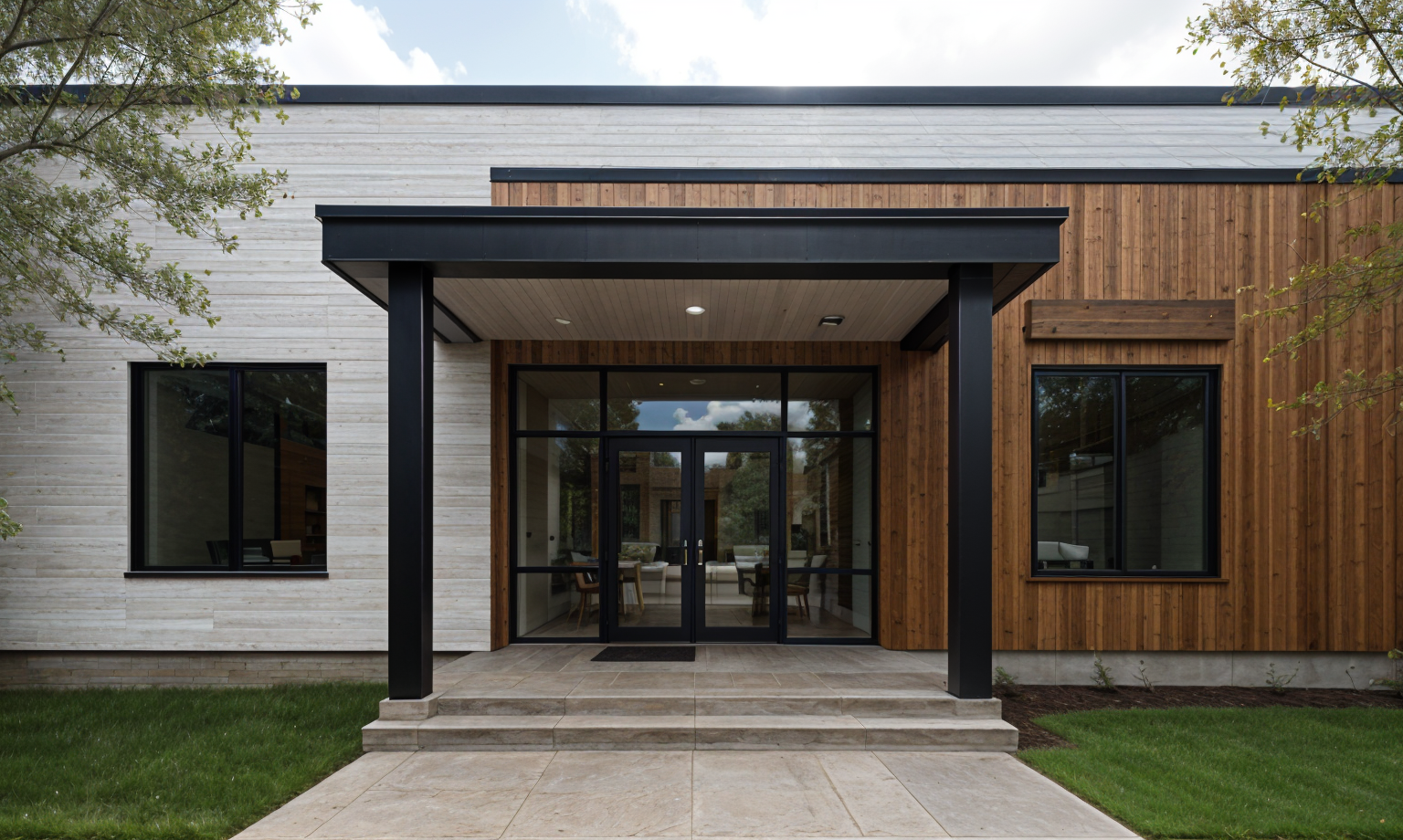 rotate the image so that it is viewed square on to the camera make the time of day a little later and show internal lighting