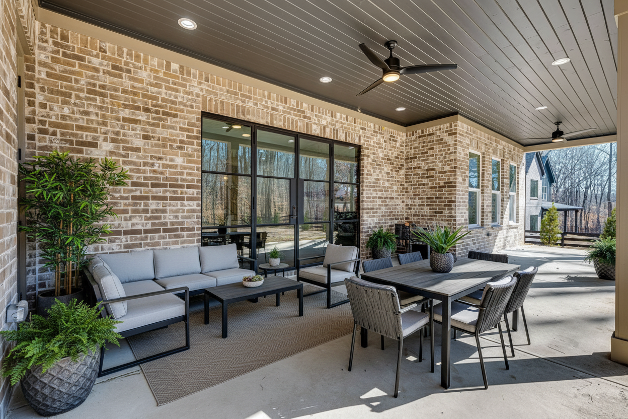 outdoor area with table and chairs do not add any new lights use white furniture