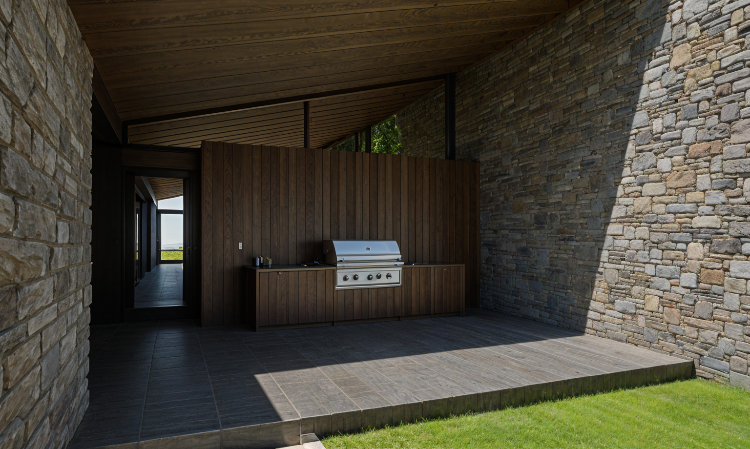 a charming detailed suburban house with a modern victorian style featuring light oyster siding and dark grey roof shingles blue shutters the front garden is lush with green grass and vibrant blooming pink flowers lining the walkway the atmosphere is serene and sunny with a bright blue sky as a backdrop the light gently illuminates the house creating a warm and welcoming feel