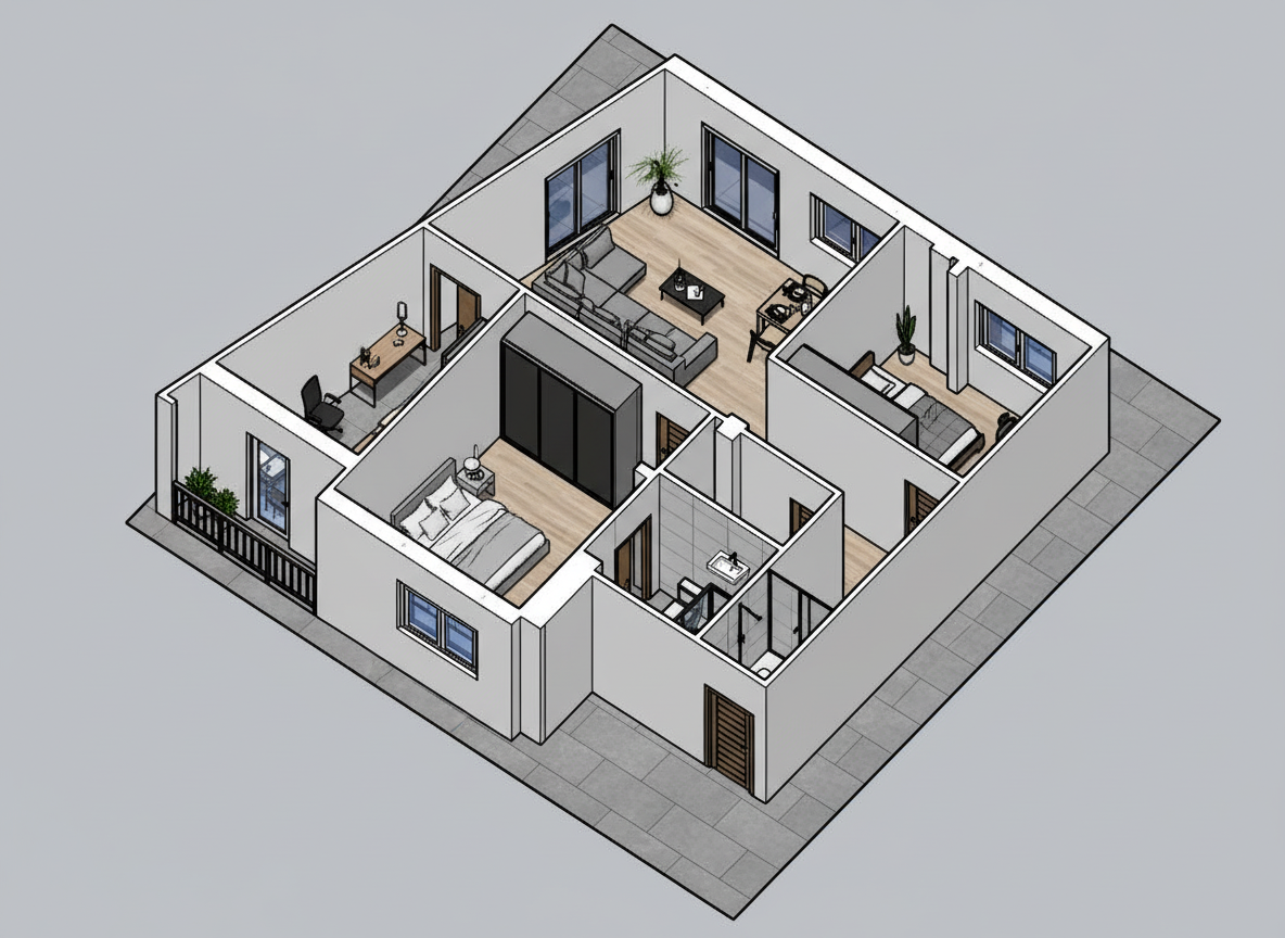 render a realistic view with 4 or 5 people maximum natural light hill with wood on the backgroudn