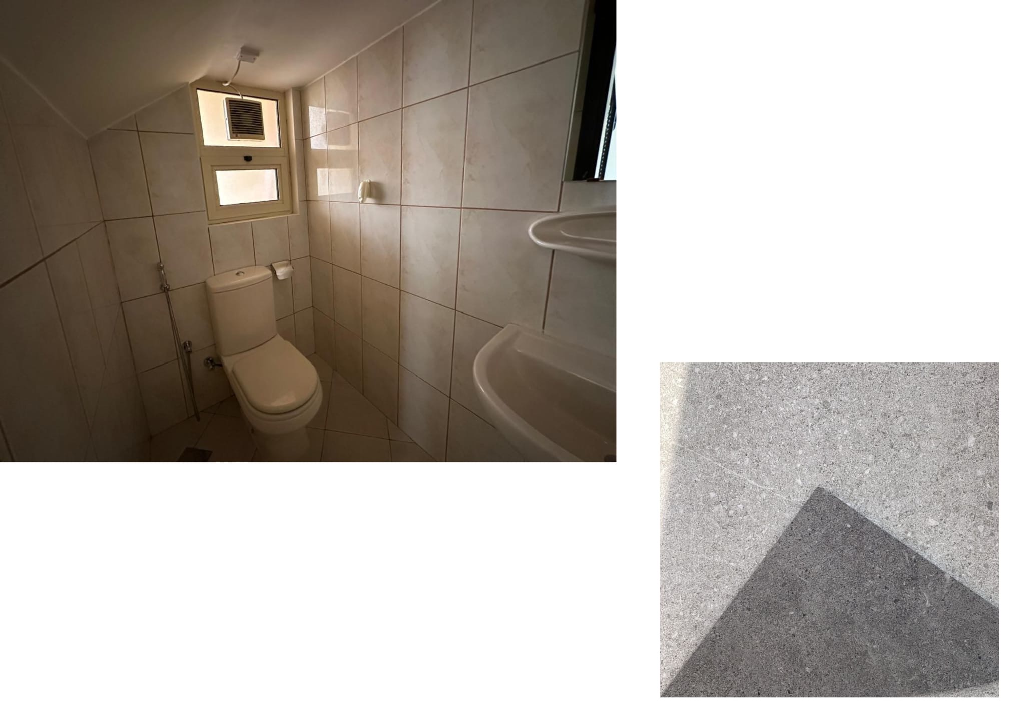 tiles everywhere walls and floor are the same as the example in the picture new sanitary ware at the same place