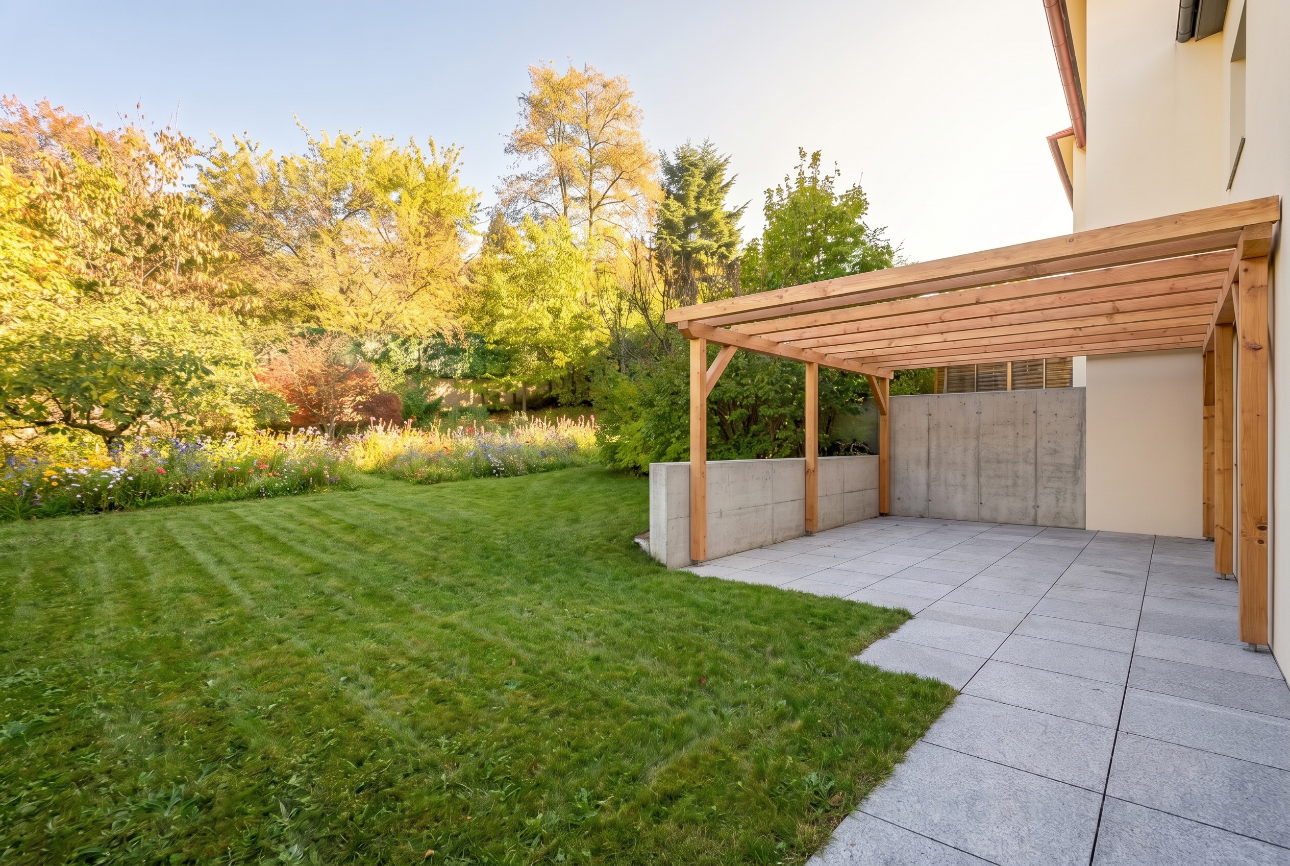odstra dv dla dice naru uj c prav hel p echodu dla by a tr vn ku nahra je tr vn kem vykresli pohodln zahradn n bytek v lev m zadn m rohu terasy vykresli komfortn gril u n zk z dky v p edn sti terasy vykresli na pergole pop nav rostliny vykresli rozkvetl r ov ke v t sn n vaznosti s n zkou z dkou a v jedn linii s n odstra z hon s lu n m kv t m p ed stromy v lev sti obr zku p idej z hony s lu n m kv t m pod l prav strany obr zku c lem je pr miov real estate prezentace