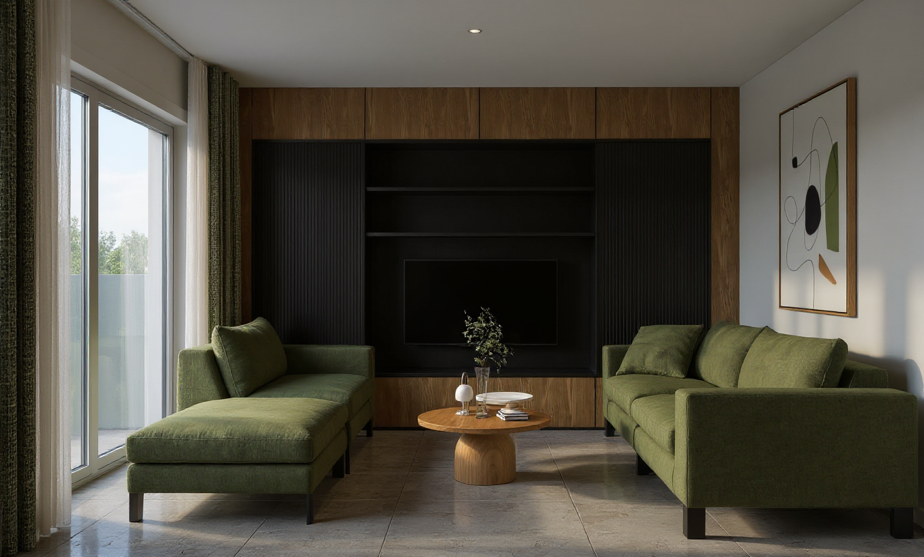 evening time lights on keep original floor white background keep the ceiling fan remove extra lights paint walls beige gray render an office chair in the middle of the desk