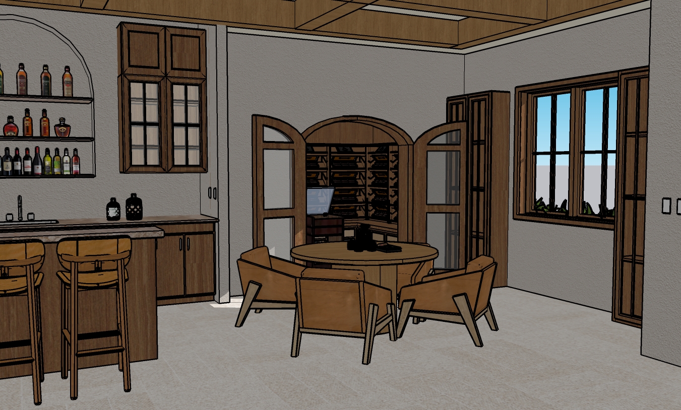 add some people playing cars and smoking cigars on the table and add led stripes on the shelves