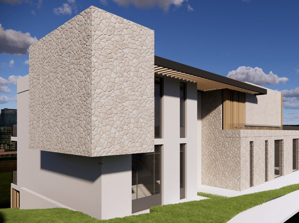tuscany house vibe in stones and wood and concrete in modern design architecture