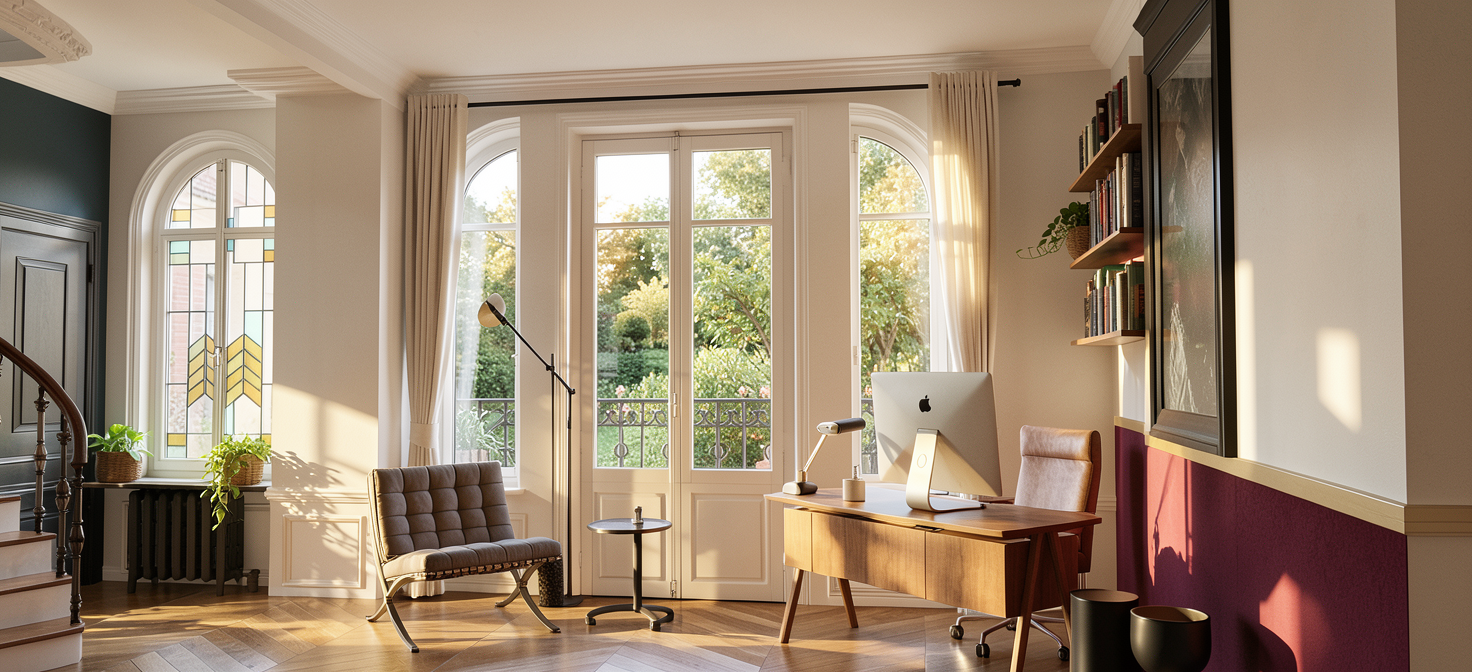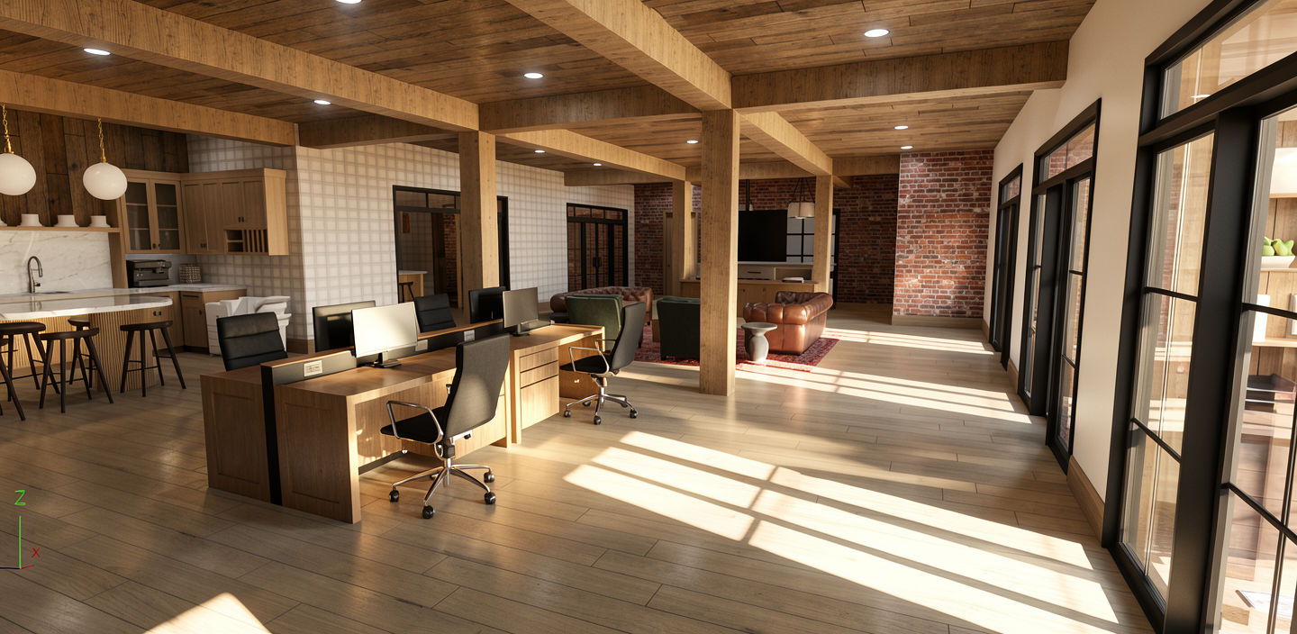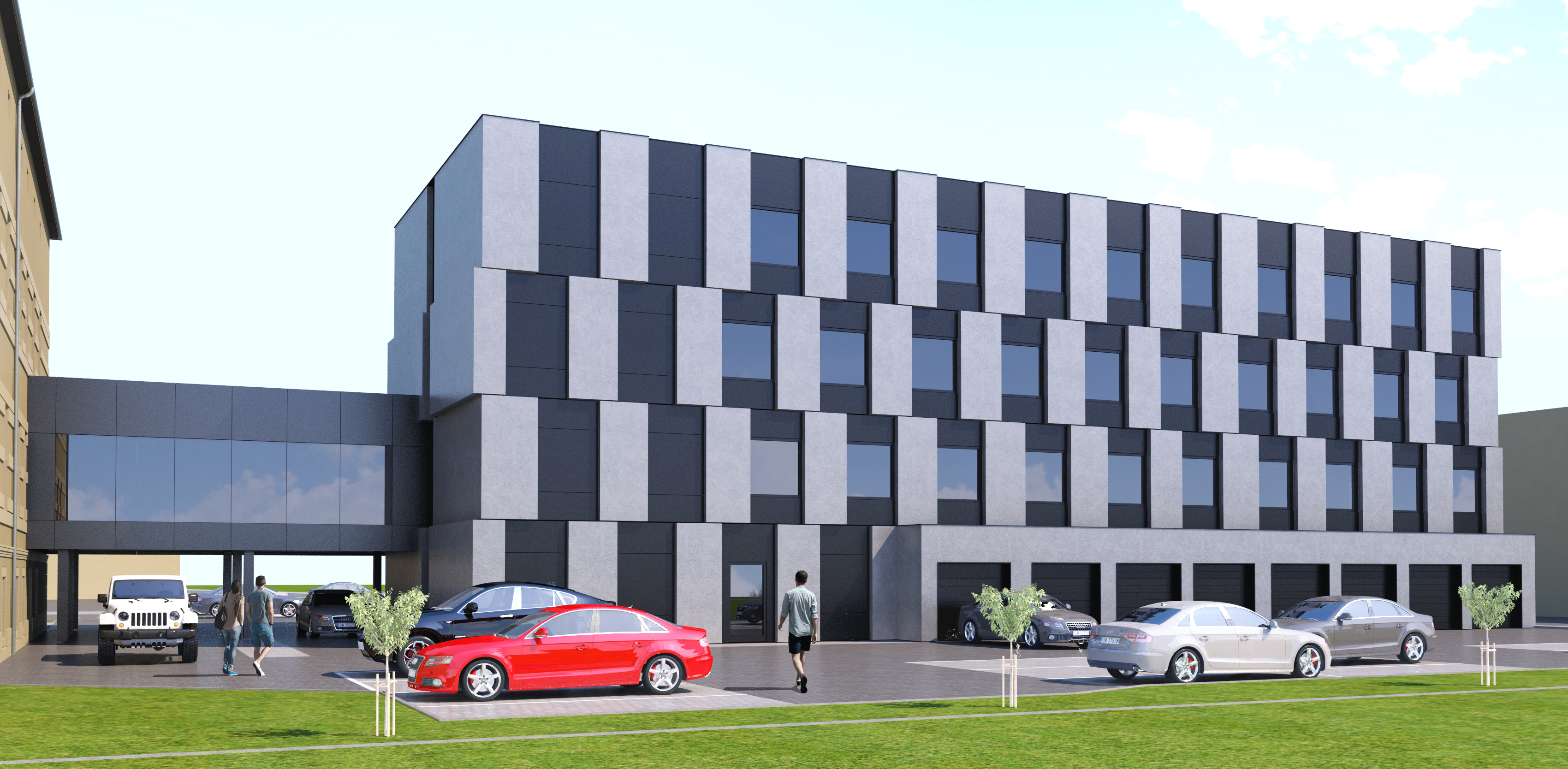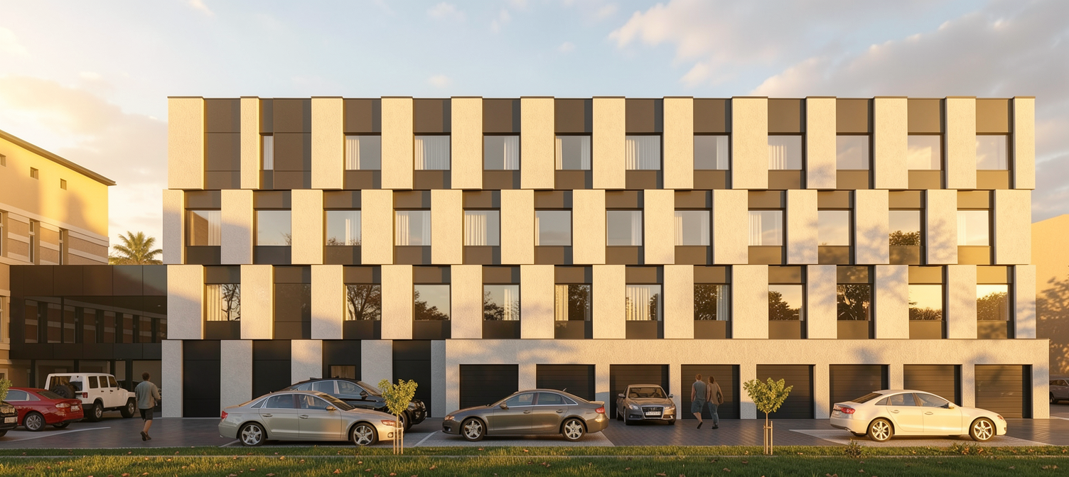 do not change anything in the building facades make a photorealistic view do not add additional windows sunrise