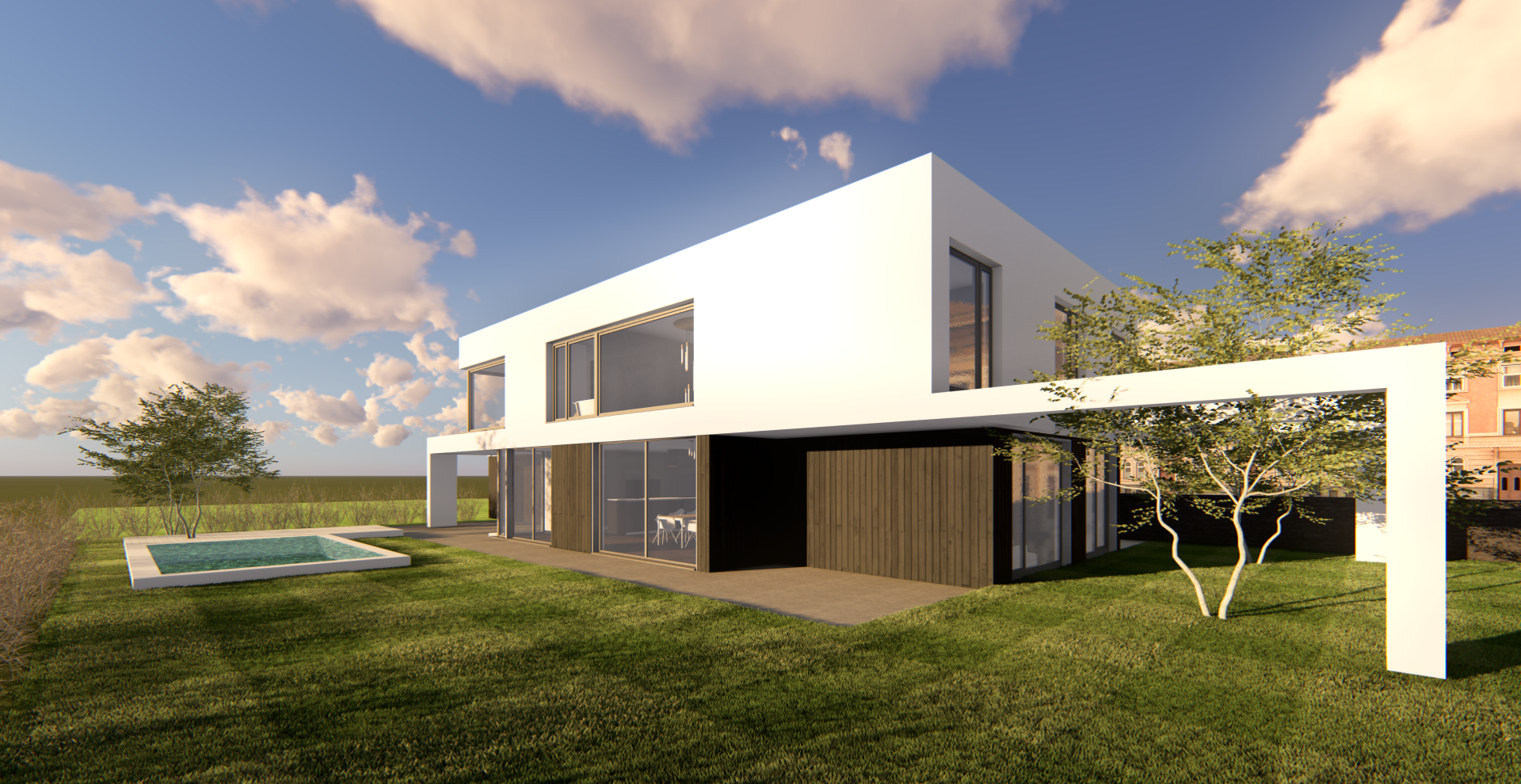 create a realistic image add 2 3 small birds in the sky include a few plants and flowers at the edge