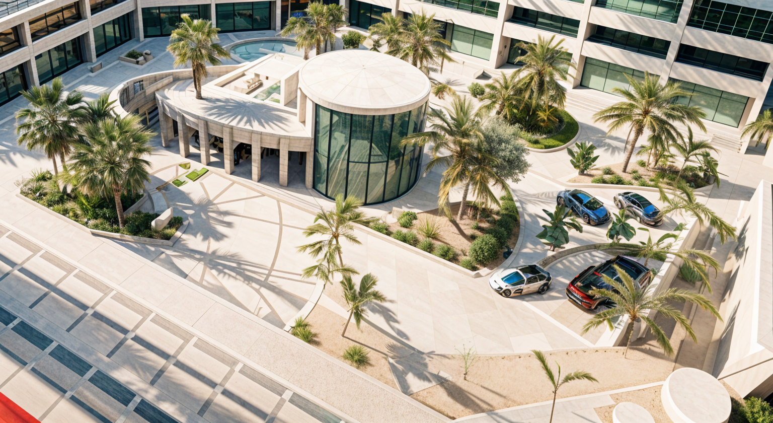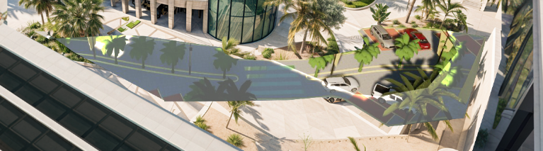 street road with landscaping modern area at a outdoor shopping centre with a sebra stripe architecture