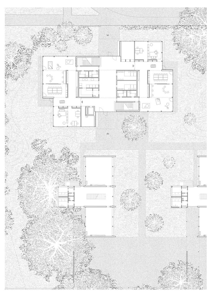 exterior shot remove all labels and create an architectural site plan architectural hand sketch rendering drawn in the style of an architect copic marker concept sketch render expressive freehand linework with visible marker streaks and layering emphasizing depth tags architectural marker sketch hand drawn rendering copic style
