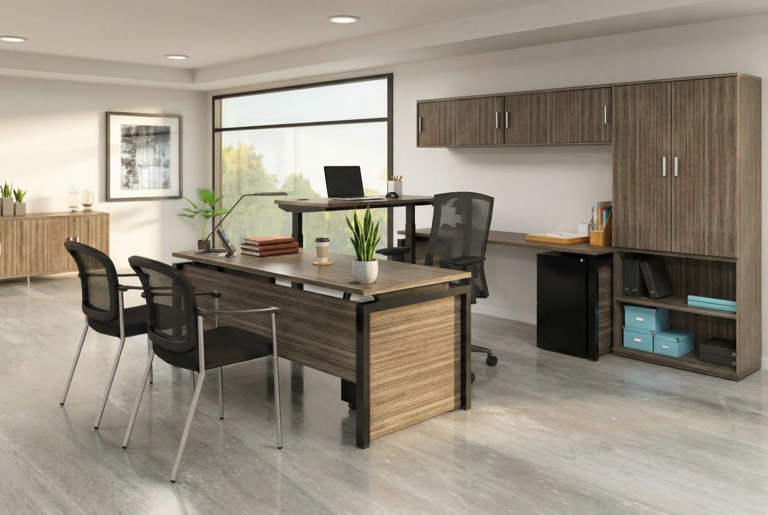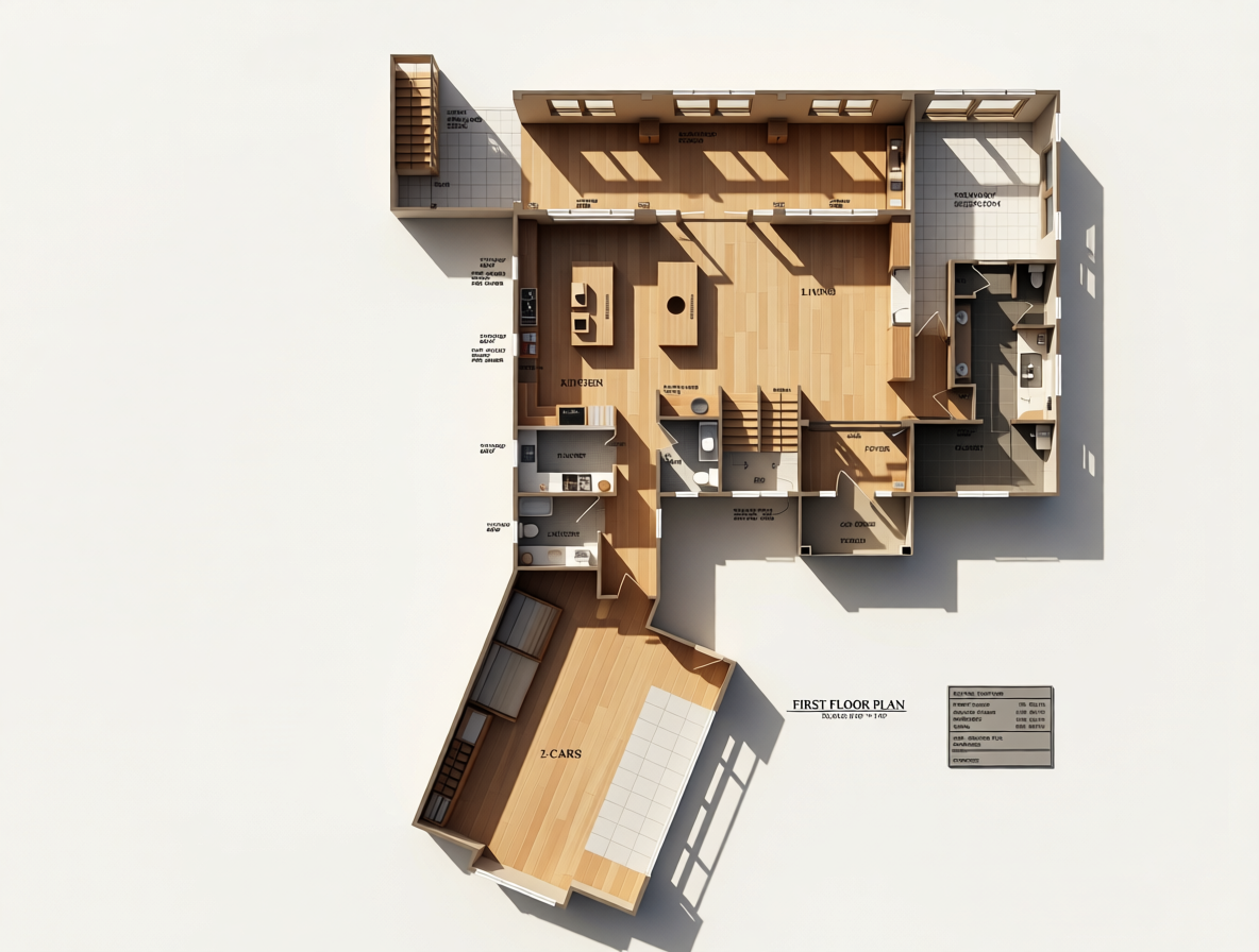 create a photo realistic kitchen rendering based on the reference image match all colours materials and textures exactly including the cabinet finish countertop material flooring hardware lighting tone and wall colour maintain the same layout and perspective as the reference add an outdoor scene visible through the window with natural daylight the outdoor view should look realistic soft greenery trees bright but not overexposed subtle depth of field in the opening to the left of the kitchen add a hallway leading into the home consistent with the design style same flooring and wall colour with soft ambient lighting and subtle shadow depth ensure the final image is high resolution sharp visually balanced and true to the original colour palette and textures no stylistic changes only add the outdoor view and hallway render as a natural daylight interior photograph