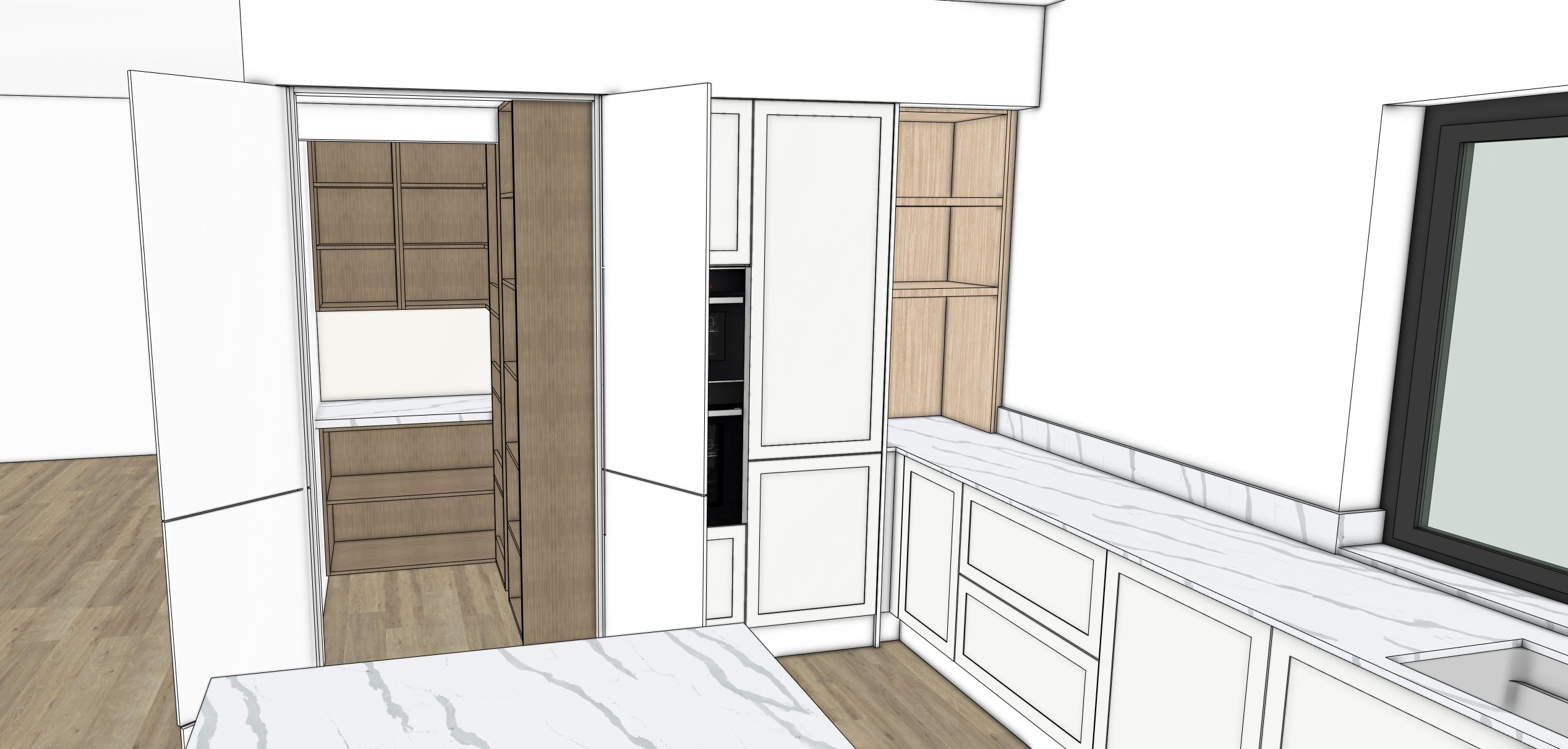 realistc render with added light in pantry area
