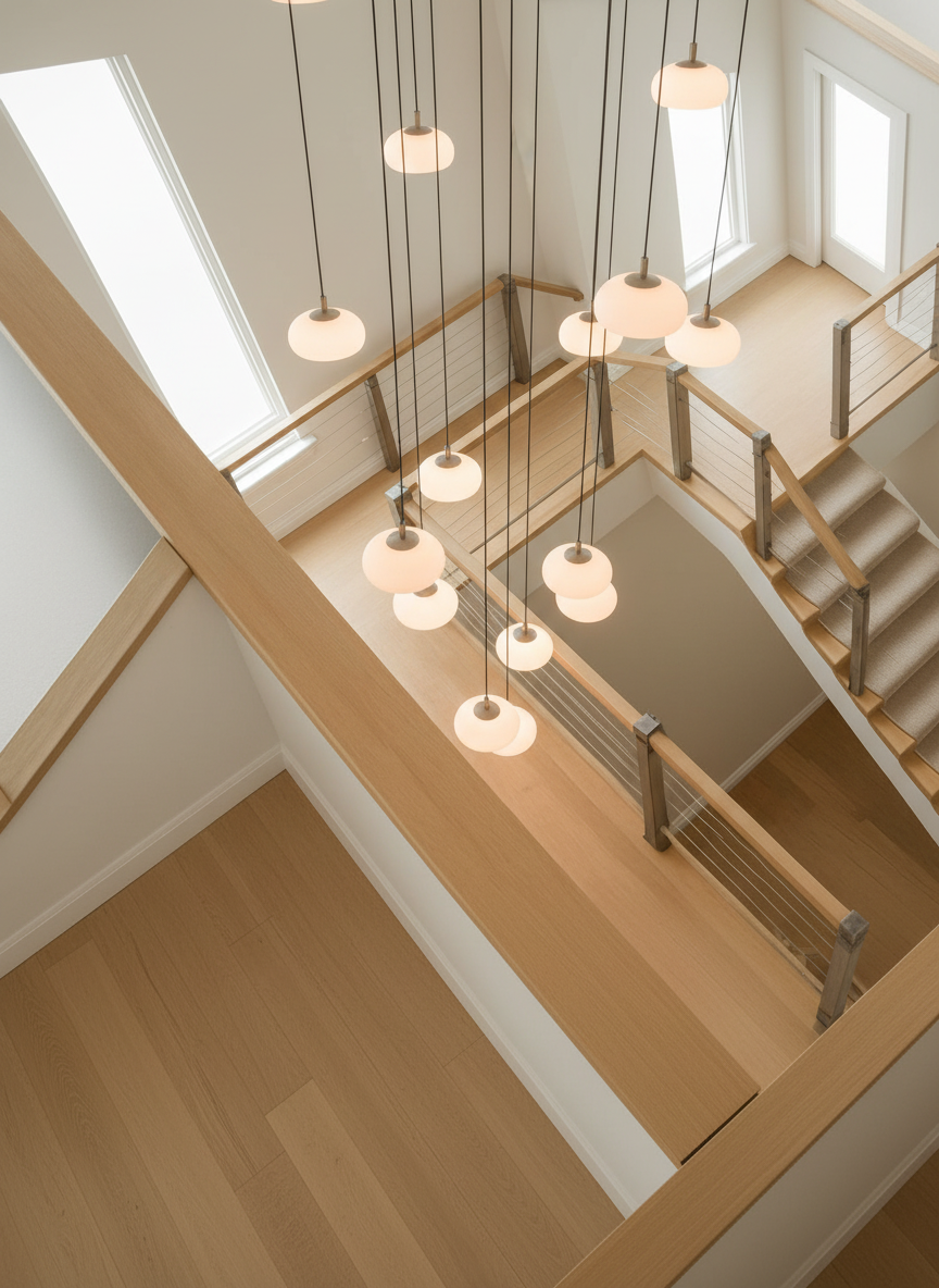 replace flooring on the left with decking add women and men standing in casual summer attire having cocktails scattered around replace white walls to the left with vertical gray boards