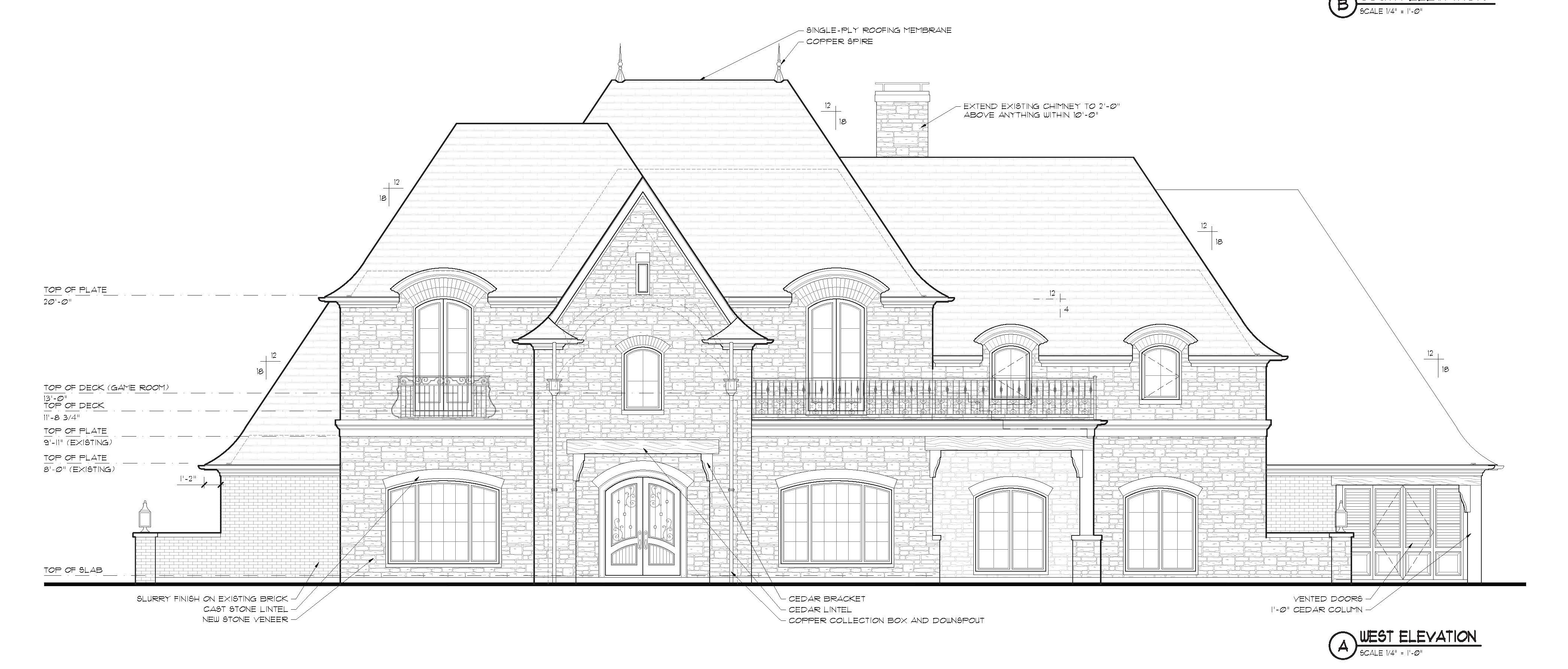 remove text french provincial stone is cream leuders roof is black standing seam metal windows and trim to be iron ore paint traditional landscaping