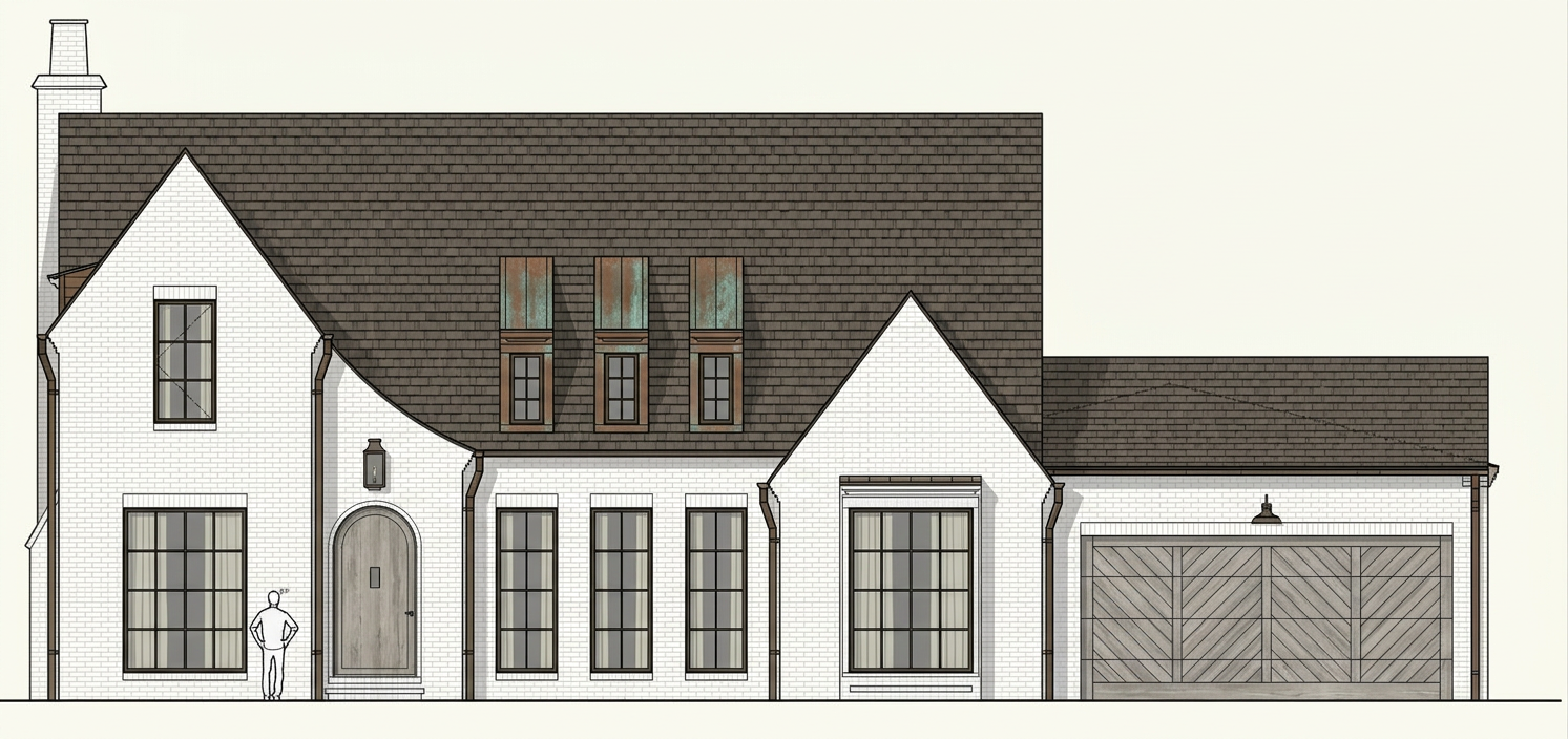 realistic rendering dormers will be white siding and copper roof aspahalt shingle will be slightly brown