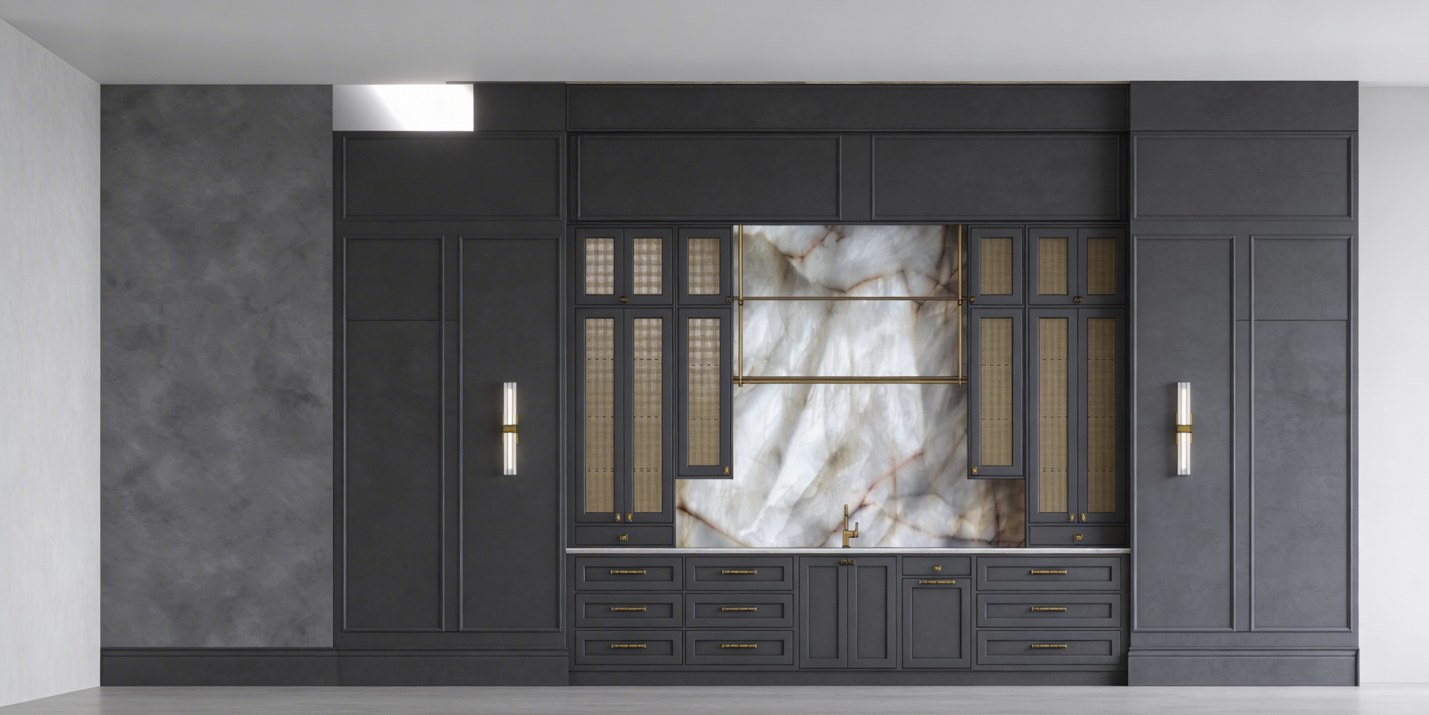 render it in scandinavian style the cabinet is high to ceiling