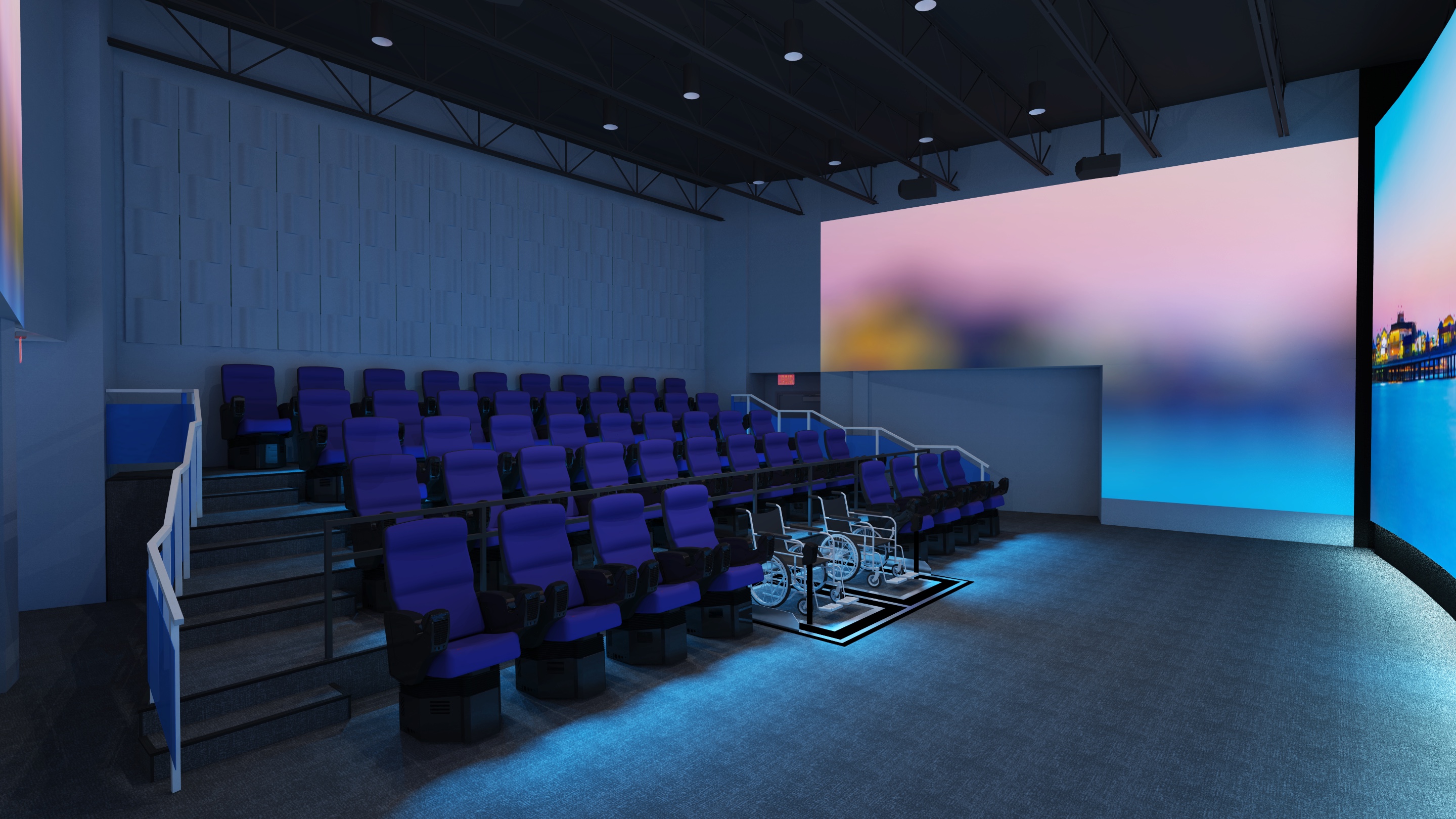 maintain color and furniture extend a side wall projected image to cover the entire side wall