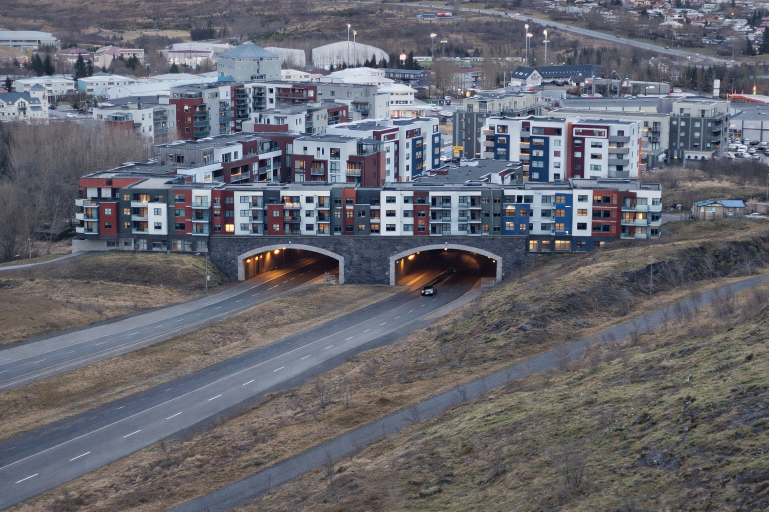 can you make a video for me where you fly over the buildings and cars drive in and out of the tunnels about a 15 second long video
