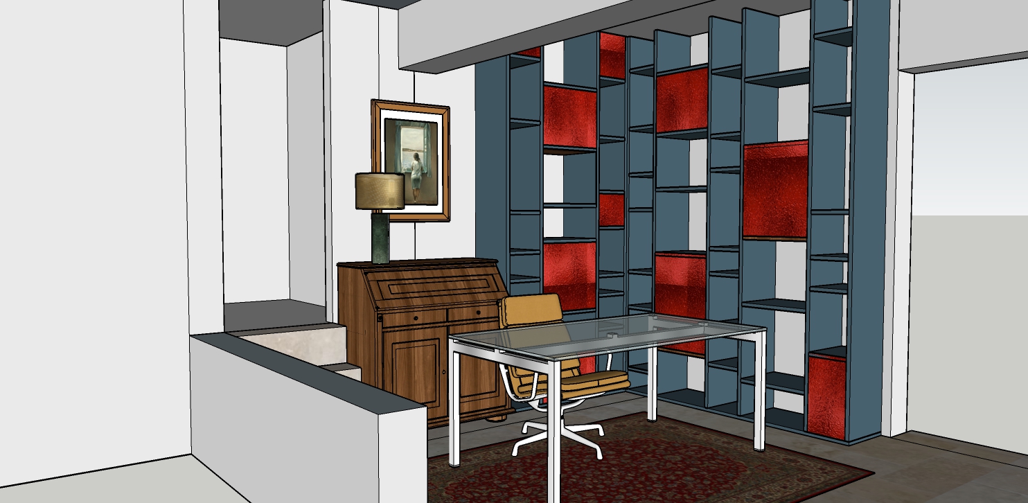 make the drawing realistic and give me more lighting near the bookcase
