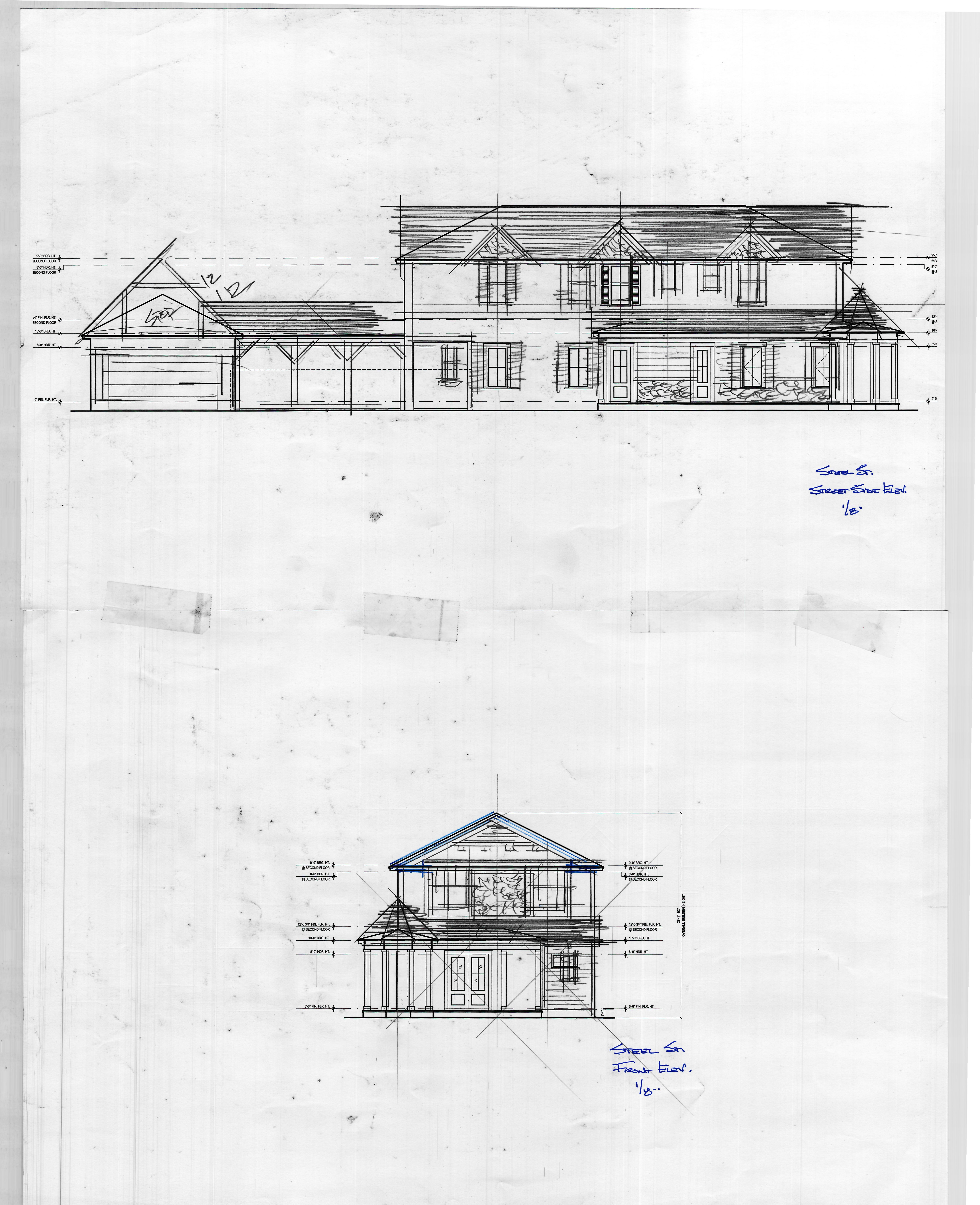 corner lot city infill lot siding around entire second floor dark colored shingles and window frames stone at porch area wood columns octaginal roof light house and dark trim colors