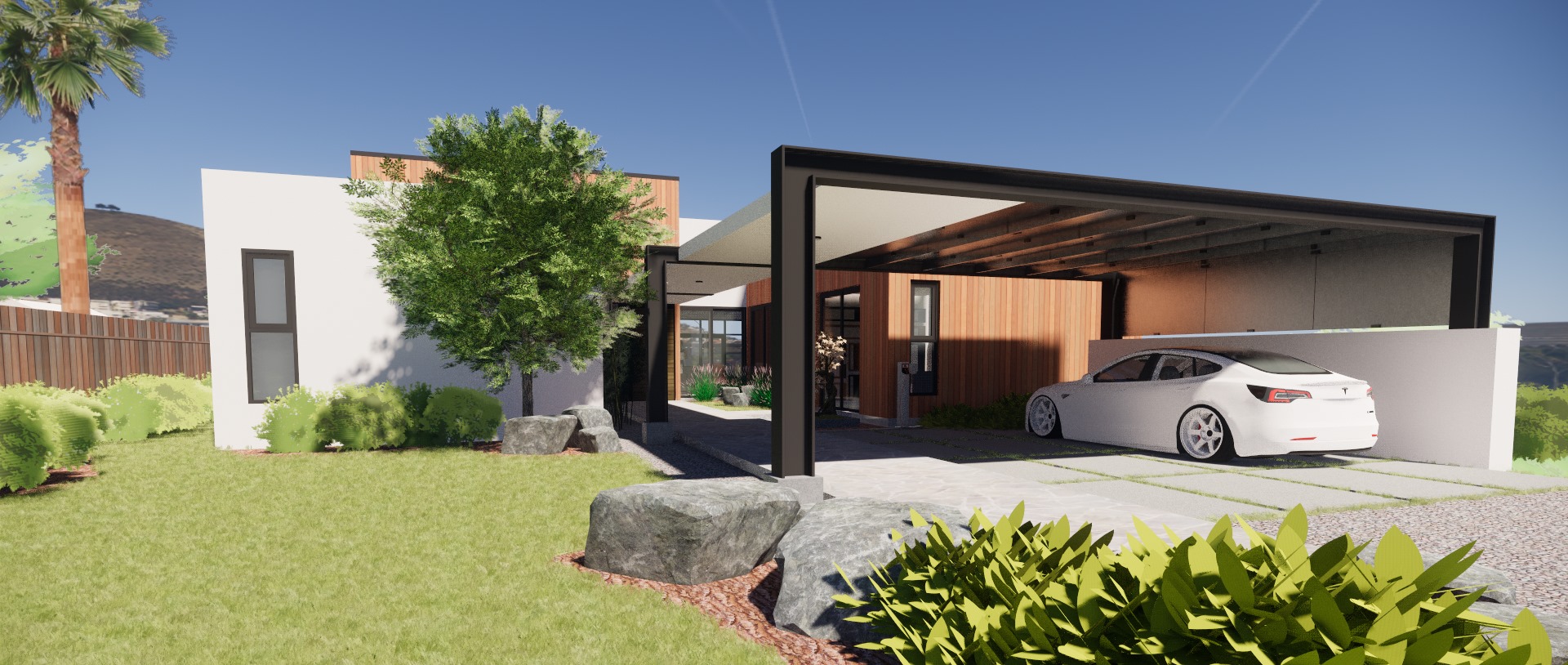 make this look realistic in dramatic california sunny weather with native landscape and trees