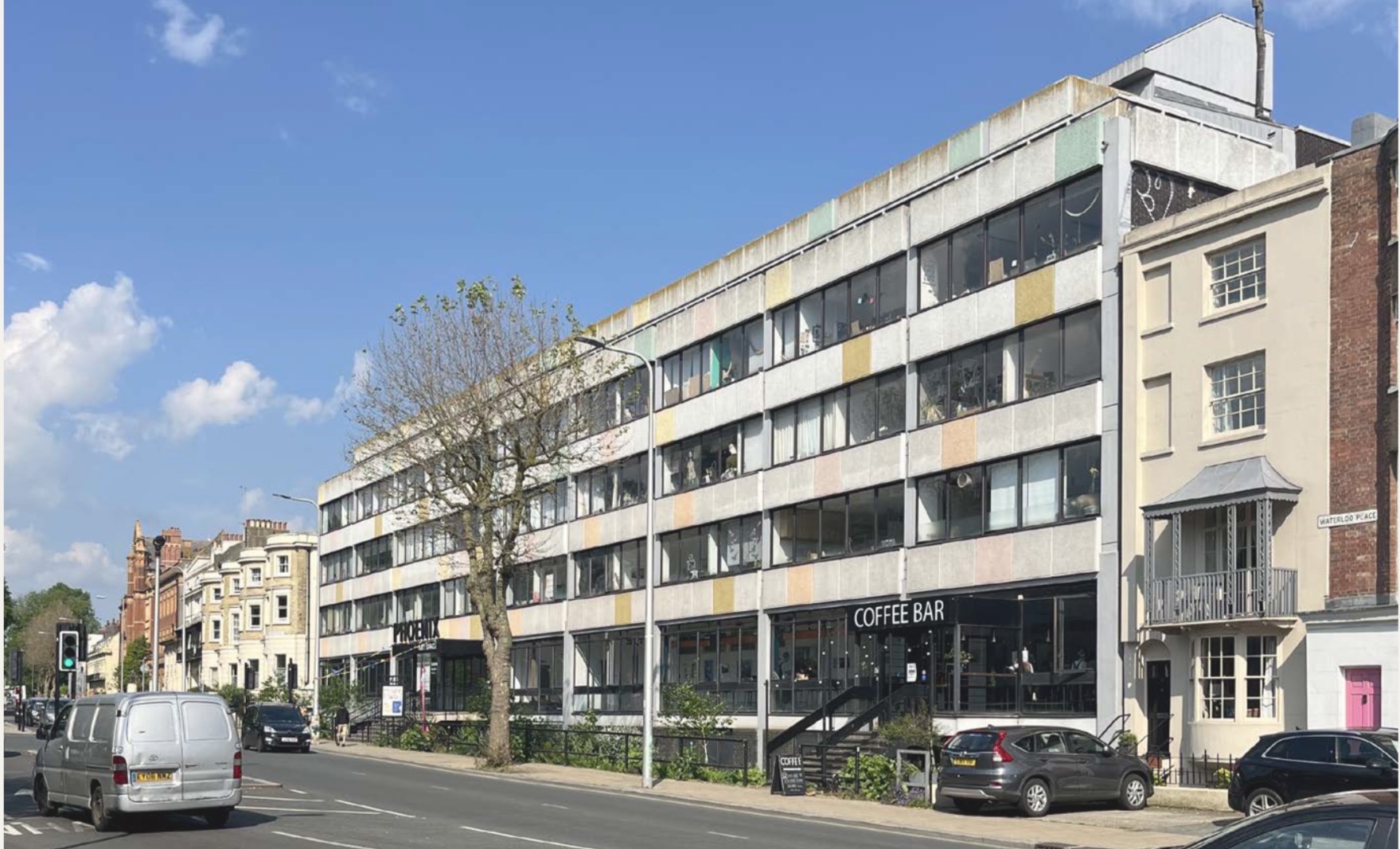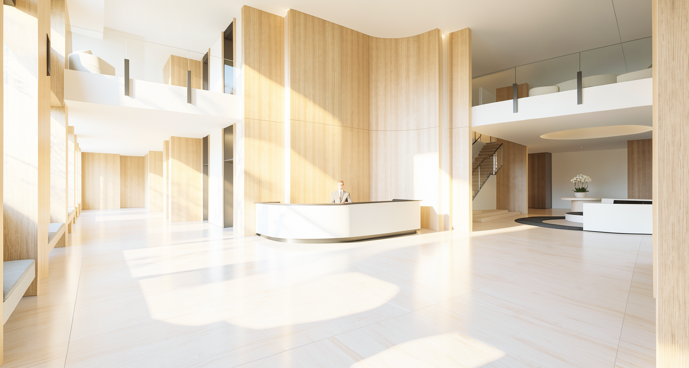 clean up the existing building facade and add a dynamic kinetic solar panel second skin facade and create a high res surreal concept visual