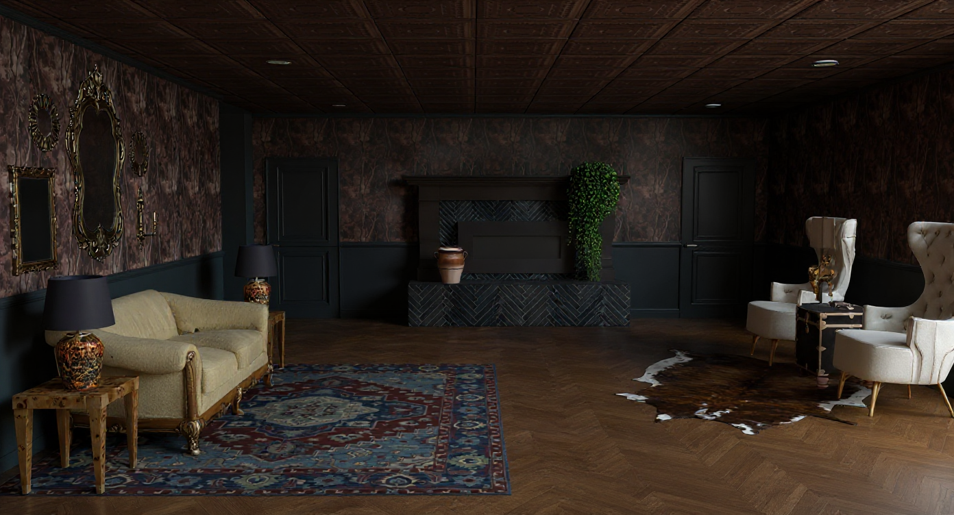 make this a photorealistic rendering make the building on the right a hotel with a hotel sign made out of red neon lettering spelled continental supported by a thin metal frame above the parapet make the sign smaller make landscaping against the buildings make the parking surface resemble elegant pavers add cars people walking and landscaping against the building in the foreground add landscaping in the parking islands put lights in the pavement in front of the buildings shining up on the buildings