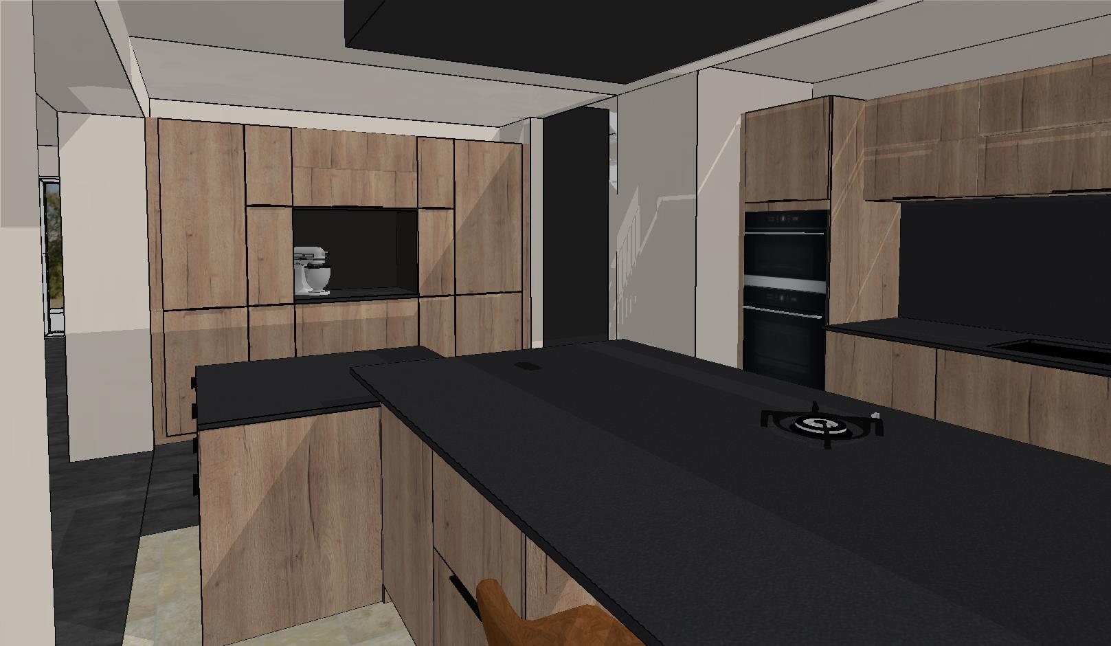 ajoute des spots au plafond et garde une luminosit de journ e plan de travail noir mat lisse conserve les sols diff rents de l image et le visuel du foyer gaz sur le plan de travail sans ajouter de plaque
