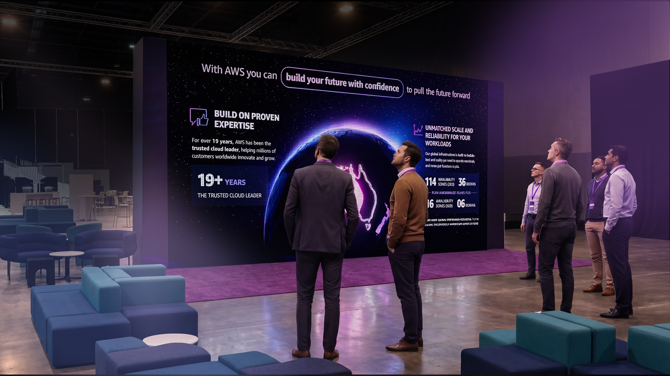 add people talking to one another on the furnitures replace some men with women standing 4 5 people standing only blue carpet