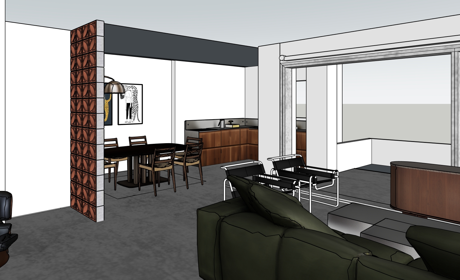 natural light realistic render keeping the colors as they are but the wood dark the floor cement big tiles but not glossy