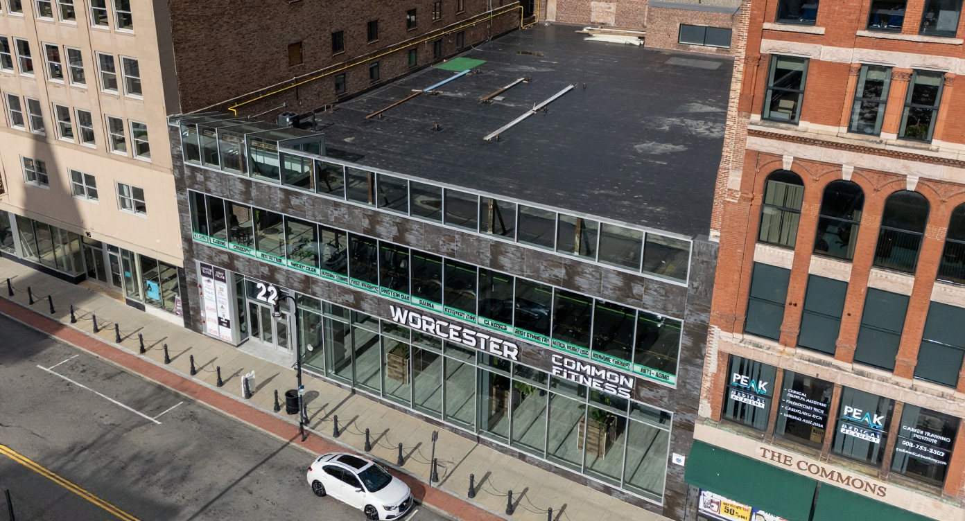 modernist exterior shot exterior nighttime architectural rendering same modern building perspective extend front window width apply warm wood material to structural beams under the awning add stone platform base under support posts use black wood cladding on all walls and surround front facing windows with 18 inch protruding stone cladding add a wood beam running along underside of awning include soft landscaping and plants for realism illuminate with subtle ambient glow and vertical linear accent lights flanking both sides of the main window interior should emit warm lighting through the large windows add vintage cars outside and inside human figures for scale and reflections of light on glass and metal surfaces architecture