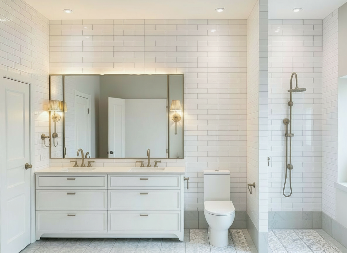 can you please make the walls floor to ceiling white subway tiles
