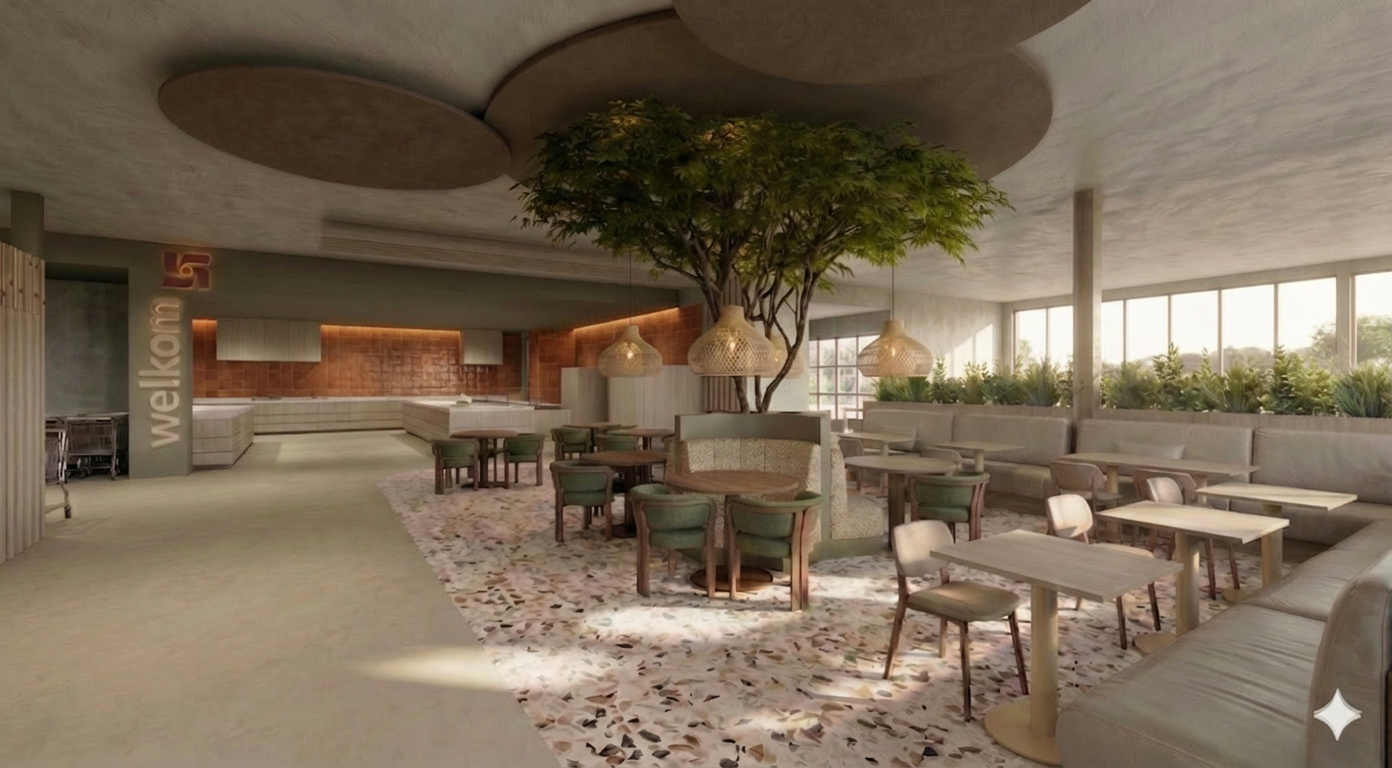 replace the table with a rectangular one and add microphones for a podcast along with people