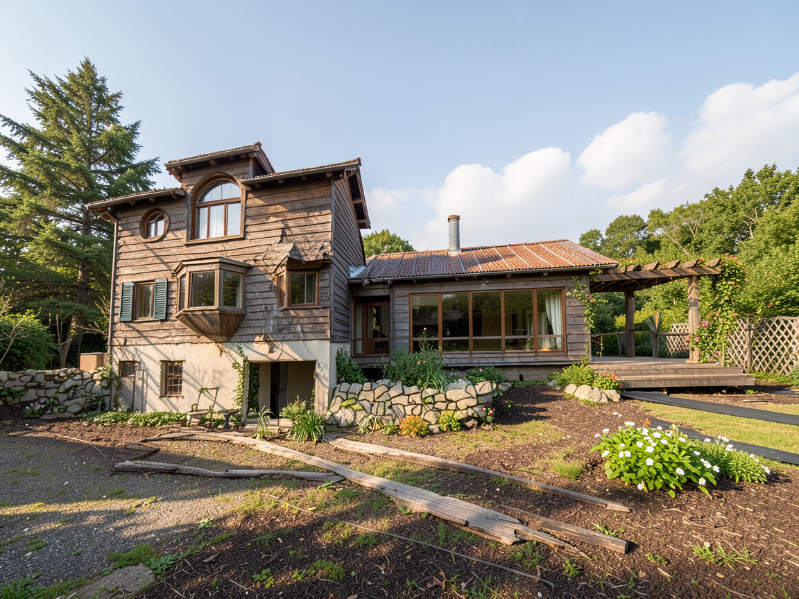 make siding very dark brown make metal roof grey