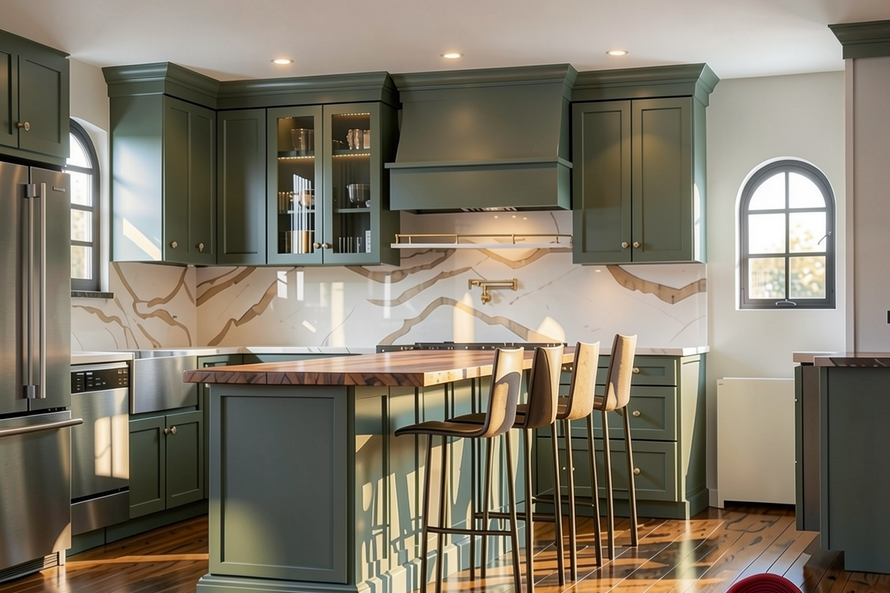 keep everything the same only change that all cabinet color so that is it a gray green