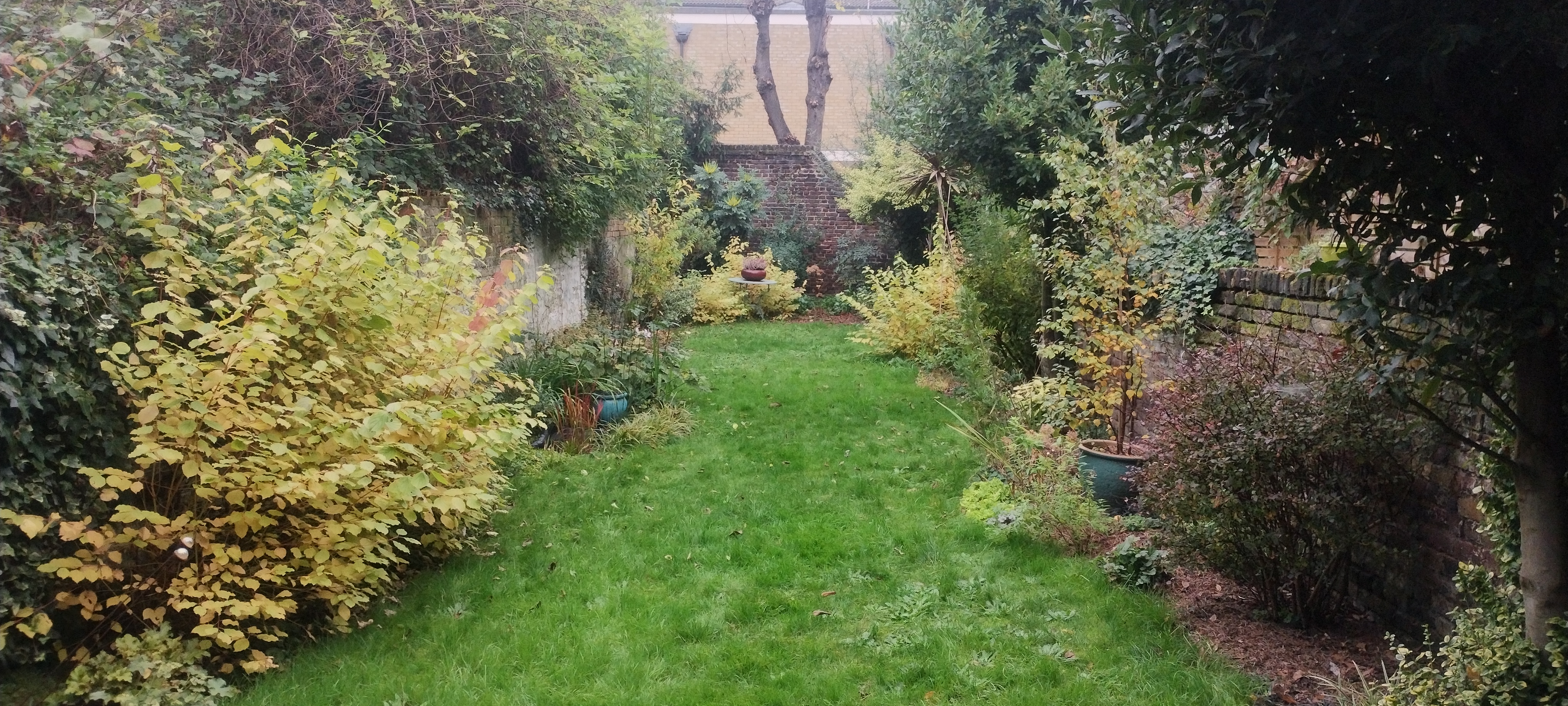 clean the garden add flowers in pots on the sides on the floor use colorful stone to make a path trough the end of the garden where there is a seating area on a patio made of pallett use big pieces of coloured glass as decoration for the grass