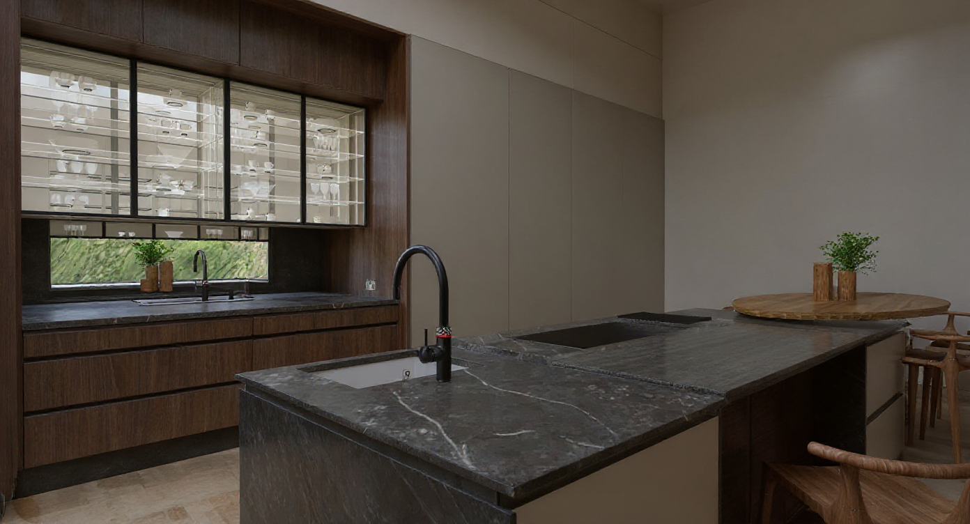 exterior shot these are some villas designed in a mountainous terrain the villas have red brick facades and the roof is made of sheet metal put some greenery the greenery and trees should look more real and the render should not look dry the render should not be warm colors but the ambient light should be brighter and be realized during the day architecture