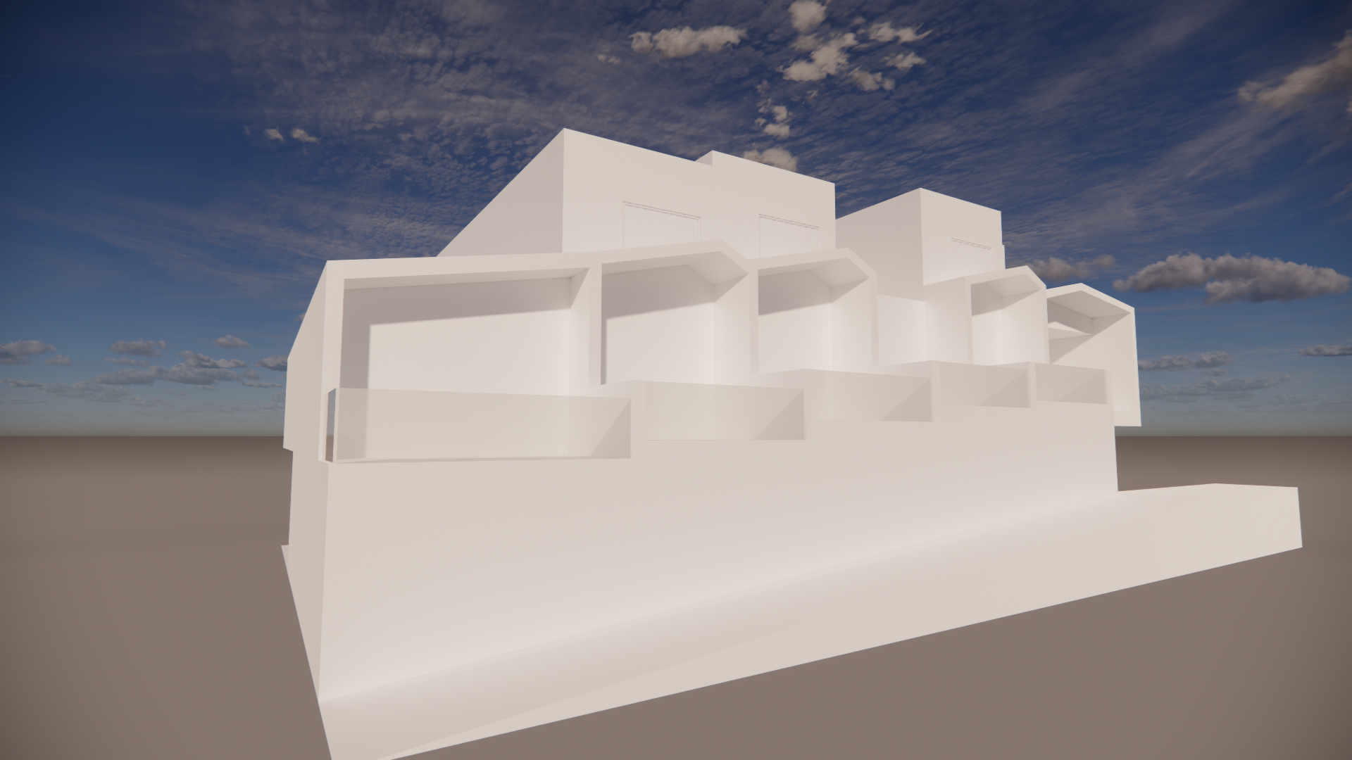 exterior shot following the form of the original white massing