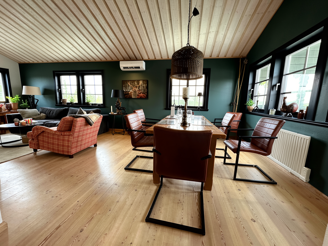 change the wall color to a matte camel tone creating a warm soft and earthy atmosphere