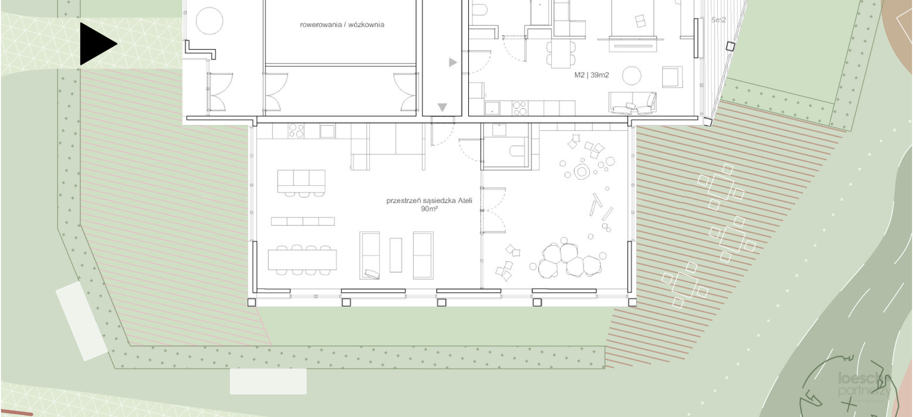 photorealistic top down architectural floor plan render of modern single story residential building 25x15m strict orthographic 2d bird s eye view from directly above no 3d perspective perfectly flat planar projection japandi scandinavian style with absolute minimalism no decorative or ornamental elements anywhere no text labels annotations dimensions or writings of any kind visible purely functional design only completely clean surfaces without any typography no grass or vegetation inside the building interior all indoor floors strictly as specified materials only preserve exactly all walls doors furniture positions corner sofa long dining conference table with chairs round table single chairs poufs kitchen island cabinets bathroom fixtures bed wardrobe area dimensions geometry structure layout terrace extension from the reference image no changes additions or removals inside the building replace the left outdoor area with a closed children s playground zamkni ta polana dla dzieci fully enclosed fenced safe play area 10x8m with soft rubber safety flooring in pale beige simple minimalist wooden climbing frame two swings small slide sandpit corner all in pale natural wood tones matching the palette enclosed by low pale wood fence with gate kolory i materia y overall color distribution 60 light clean wood tones knot free smooth grain uniform pale blonde 35 pure white surfaces 5 very subtly earthy muted tones on upholstery rugs and playground equipment only desaturated nearly white with faintest whisper of terracotta clay sage or olive light blonde whitewashed knot free hardwood flooring with vertical planks throughout all rooms except kitchen and bathrooms clean smooth uniform grain with no knots or imperfections kitchen floor finished in smooth extra light warm beige microcement seamless matte pore free surface with subtle trowel texture no joints or grout lines extremely pale almost white sandy beige with faintest warm undertone both bathroom floors finished in smooth light warm beige microcement seamless matte slightly warmer and marginally darker than kitchen but still very pale clear visual boundary between microcement zones and wood floor zones children s playground pale beige rubber flooring pale blonde wood equipment and fence matching clt walls walls constructed from exposed cross laminated timber clt smooth knot free clean pale blonde layered wood grain on all wall surfaces perfectly uniform light wood lamination lines only no knots dark spots imperfections clt wall thickness visually prominent in top down view showing clean layered cross section pattern at wall ends large glass terrace walls pure transparent glass with subtle frame in pale wood tone terrace decking light blonde wood planks matching interior flooring flat roof subtle green sedum texture in muted sage tone right surrounding sloped terrain pale green grass with minimal shrubs and subtle topography contours o wietlenie i render strict color palette 60 smooth clean pale blonde knot free wood 35 pure white 5 ghost earthy tones on upholstery rugs playground only everything blends into near monochromatic pale palette zero vivid saturated synthetic colors anywhere lighting soft flat diffused overcast ambient with no directional source uniform low intensity illumination across entire plan terrain terrace playground no harsh shadows sunlight pools gradients only very subtle ambient occlusion beneath furniture legs under bed frame in wall corners under playground equipment shadows extremely faint soft barely visible no specular highlights reflections light bouncing mood calm dim evenly lit like overcast day low brightness low contrast realistic material rendering smooth knot free light blonde floor texture in main zones extra light almost white warm beige seamless matte microcement in kitchen zone light warm beige seamless matte microcement in bathroom zones pale clean clt wall grain pure white smooth matte countertop kitchen surfaces fabric micro texture on upholstery sofa chairs poufs matte ceramic on sanitaryware soft rubber texture on playground floor pale wood grain on playground equipment fence ultra realistic high detail cgi render 8k resolution all doors throughout shown fully closed no door swing arcs open indicators partial openings clean straight door lines only as thin gaps in walls