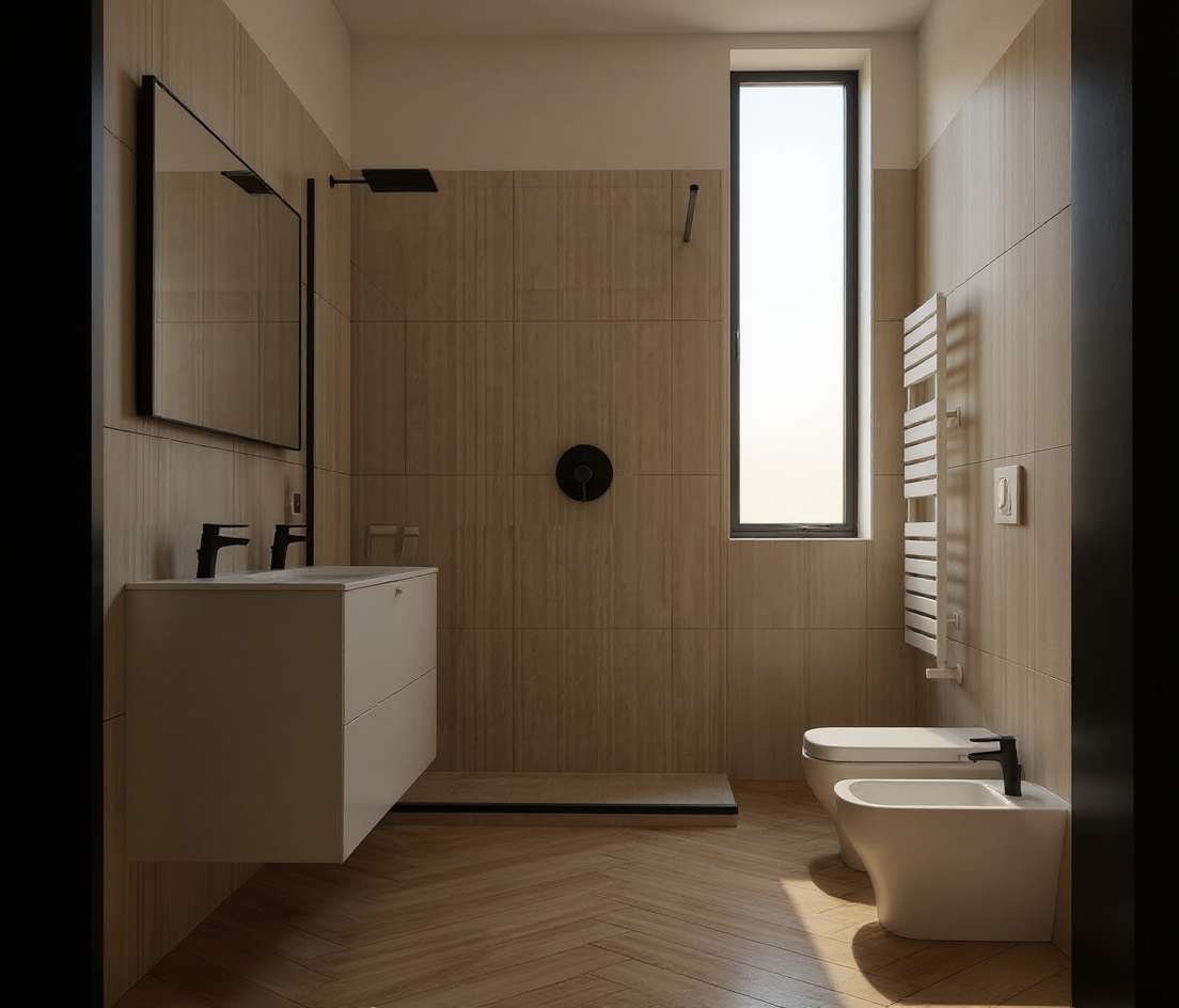 a modern luxurious villa living room with a serene and sophisticated atmosphere the room features woll fabric sofa and a terrazzo round table the walls are limewash appliances are seamlessly integrated adding a touch of contrast overhead lighting is warm and ambient creating a cozy yet refined ambiance the flooring is parquet enhancing the airy feel of the space sparse greenery adds a hint of freshness while maintaining the minimalistic and clean design outdoor light from the right hand side window view is of luxury villa style