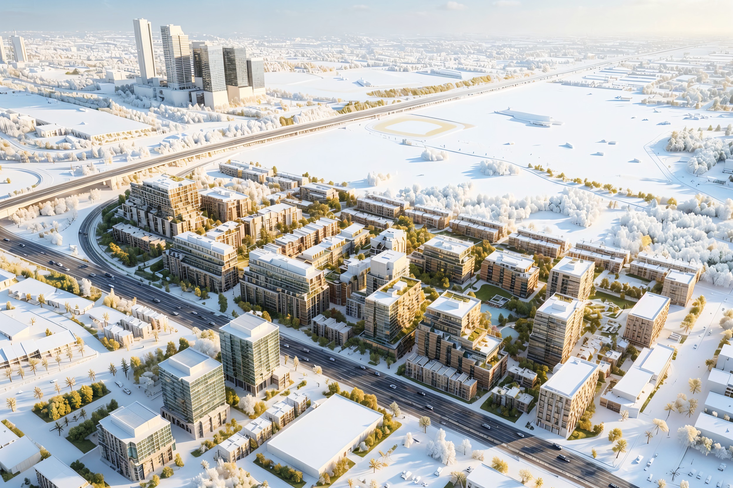big bjarke ingels group detail shot architectural illustration with colored buildings only on the main site architecture