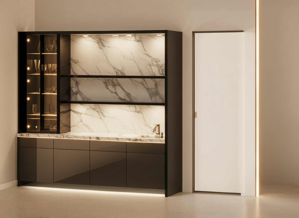 change upper stone backsplash to matching black wood back