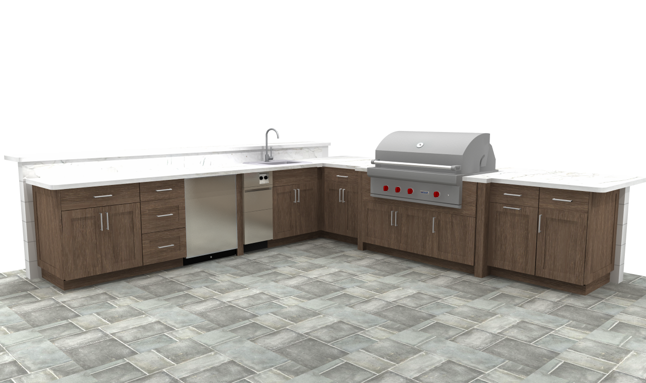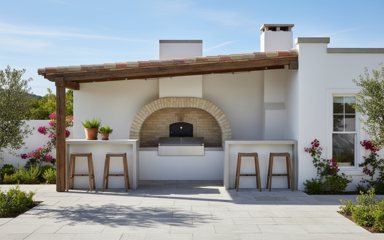 add backyard scenery behind add bar stools behind left and right sides add food and beverages on counters