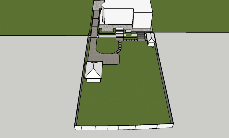 large garden with extensive lawns curved flower beds and seating areas raised terrace shown to the rear of the building with wide steps lots of colourful planting base on the view in supplied picture