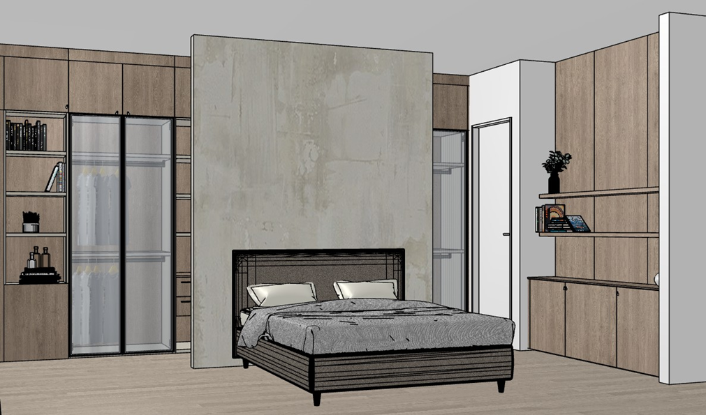 keep materials and colors as per original the four glass doors are micro ribbed natural light comes from left side of the picture