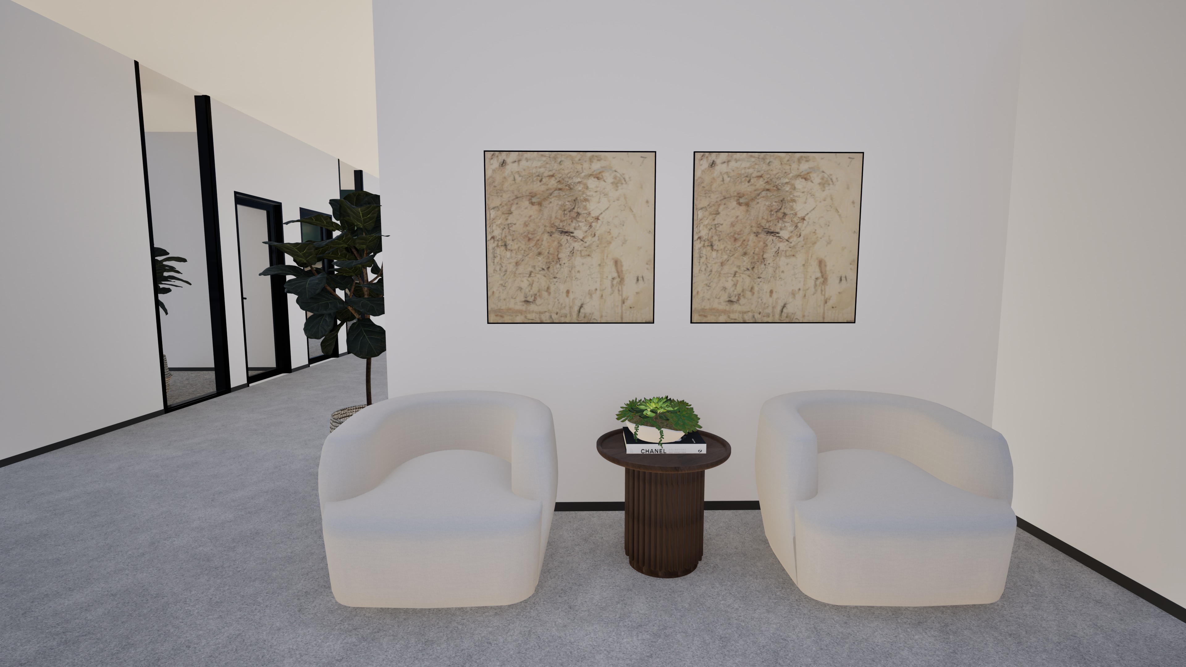 keep all materials and finishes the same add people add decor and artwort enhance lighting and quality do not add any furniture natural lighting