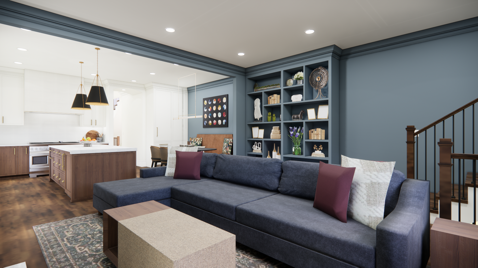maintain all furniture shapes structure and scale change only the textiles apply different fabric patterns and color palettes to pillows sofa rug while keeping furniture form the same test options with stripes small scale prints subtle texture and a bold pattern
